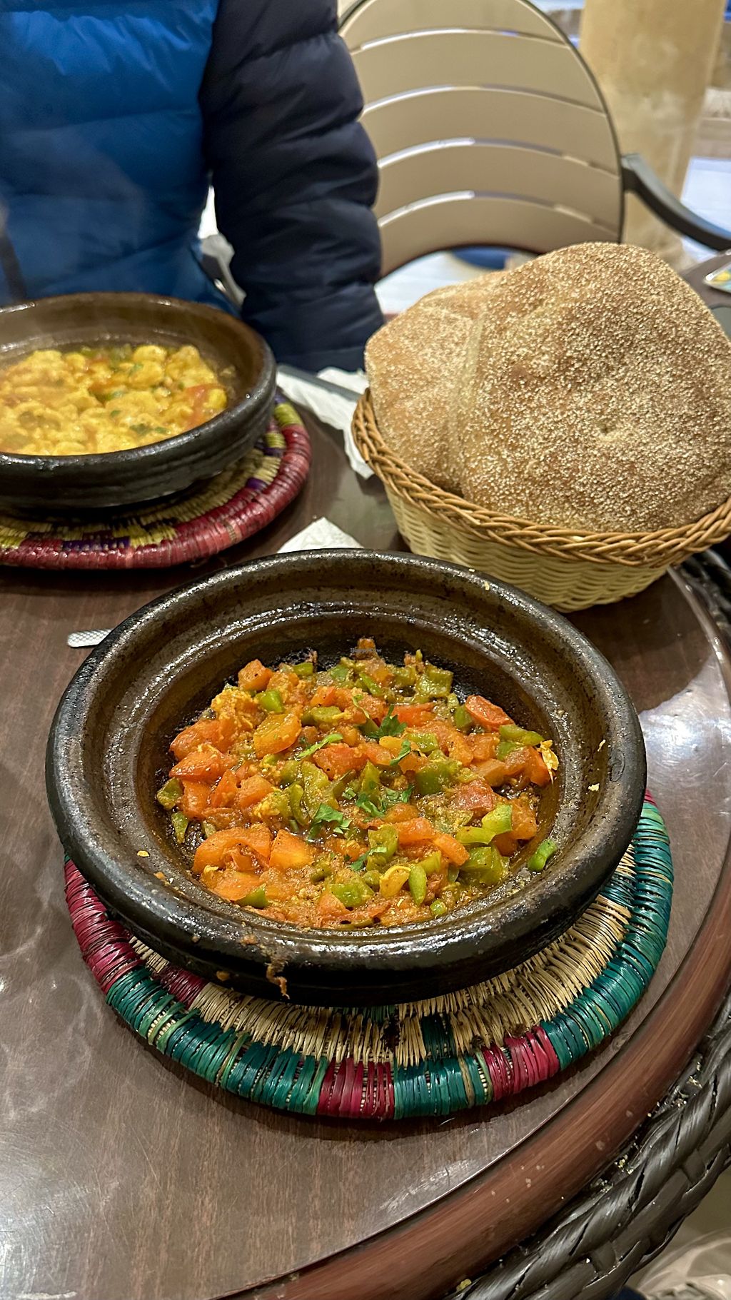Vegetable tajine, eggplant salad (with olives and lemon), white beans,…