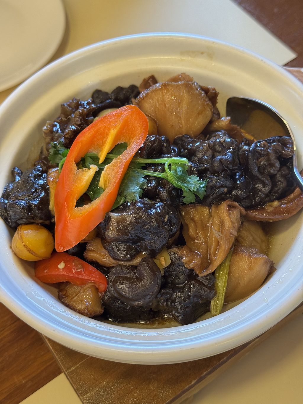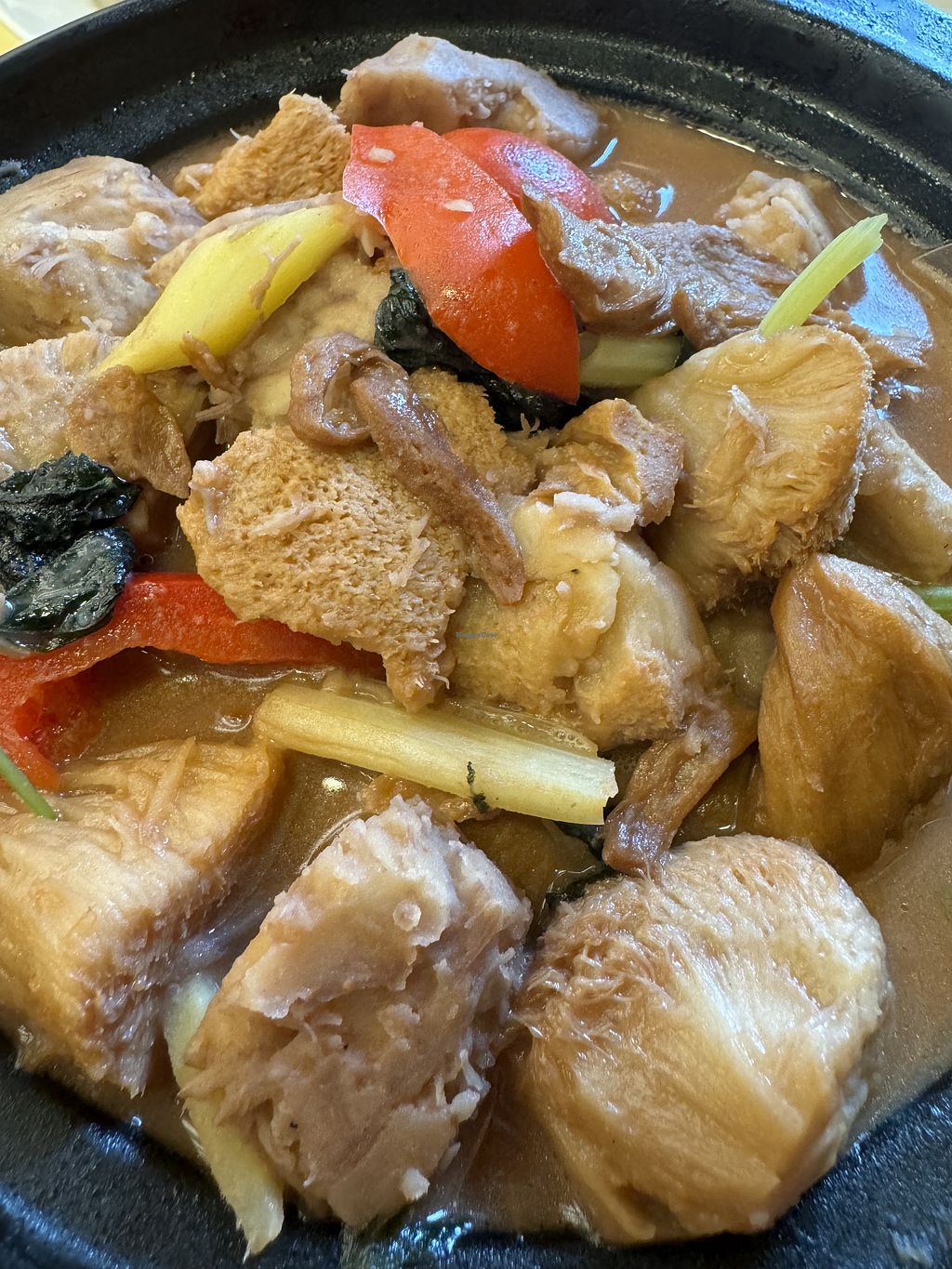 Braised Beancurd Patty filled w/Mushrooms, Celery & Carrot