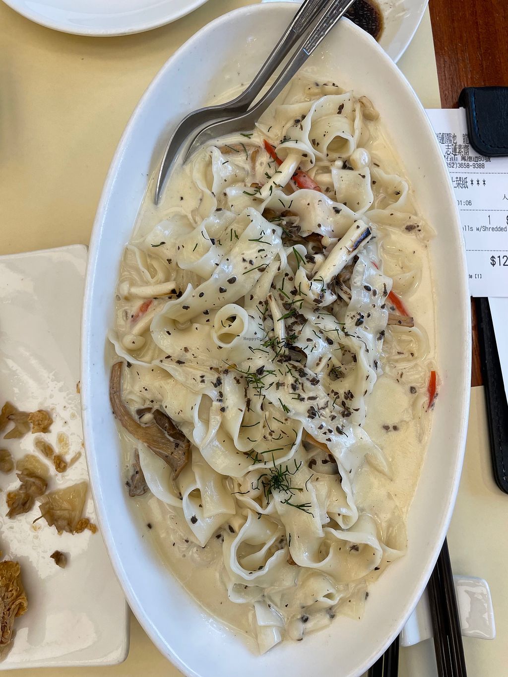 Flat mushroom noodles, made with locally collected mushrooms, 3 variet…
