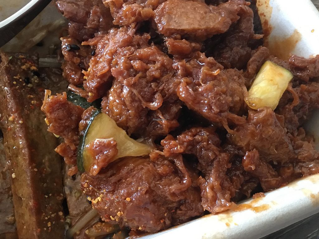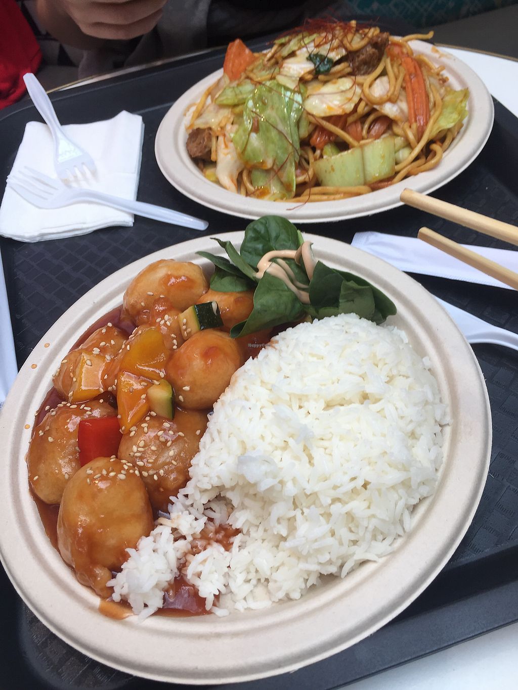 Lots of faux meat options. Has a hot serve area with ready to go options. Sweet and sour pork was pretty good!! Will def come back.