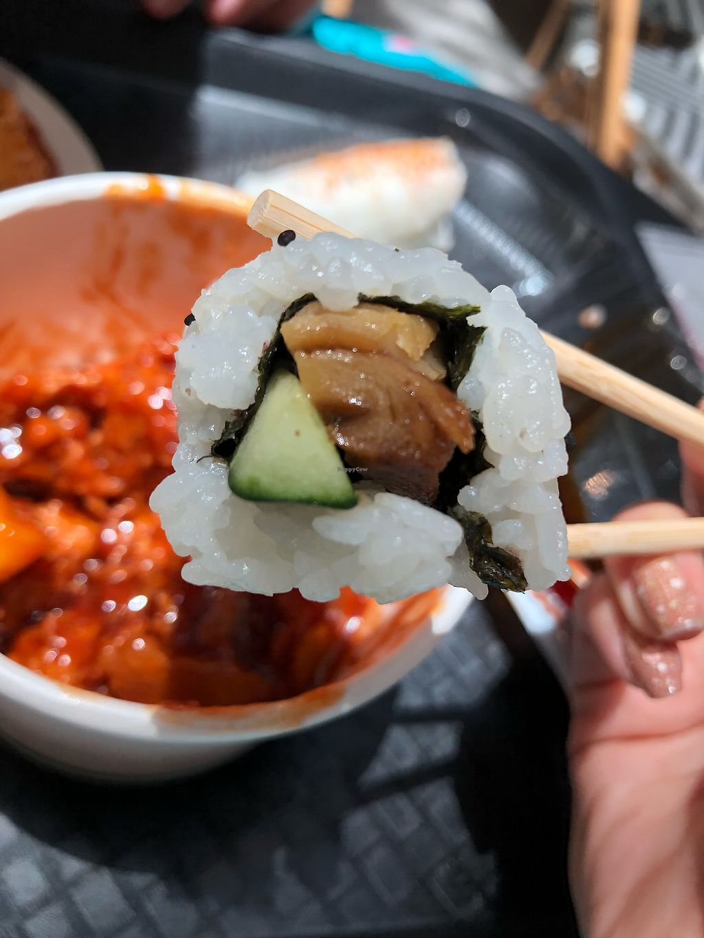 Amazing to see a fully vegan mall shop like this. All of the Sushi is great for its price and accessibility of just walking by. The rice boxes with satay chicken/BBQ pork was also delicious.