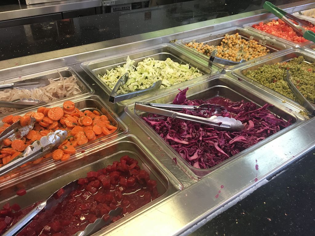 Gave this place try and couldn't be happier with the vegan options and excellent complimentary topping bar to customize all orders to taste. We tried the falafel plate and added hummus, baba ganoush, marinated carrots and veggies, and couscous. They had some great looking sauces too, but I'm SOS free so didn't venture to try them on my first visit. The staff was really friendly and the restaurant was very clean, with the topping bar nicely maintained.
