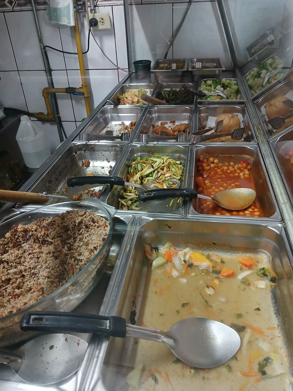 Es ist ein winziges aber sehr zu empfehlendes Restaurant. Es gibt Buffet und viele verschiedenen Gerichte, alle sehr lecker und die frischen Säfte auch. Die Besitzer sind super freundlich.