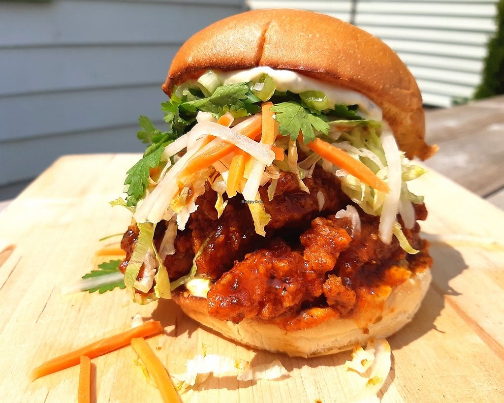 An all-vegan restaurant serving artisan, small batch, hand-made, plant based crispy fried Chikun, Bakun, cheezes, and sauces made into over the top sandwiches, in addition to crispy Chikun bites with dipping sauce and freshly squeezed lemonade. Order take out on website. Email: GreatFood@GreatVeggieBites.com. Moved back to this address in Oct 2021. Reported closed September 2022.