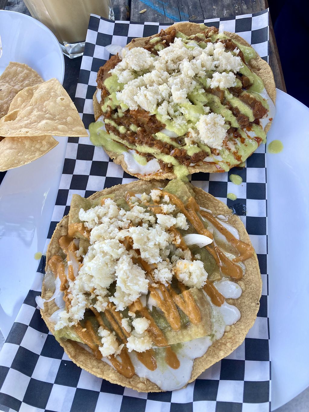 Sope and tacos were tasty, with 4 different filling options. Tinga (jackfruit) was my fav❤️