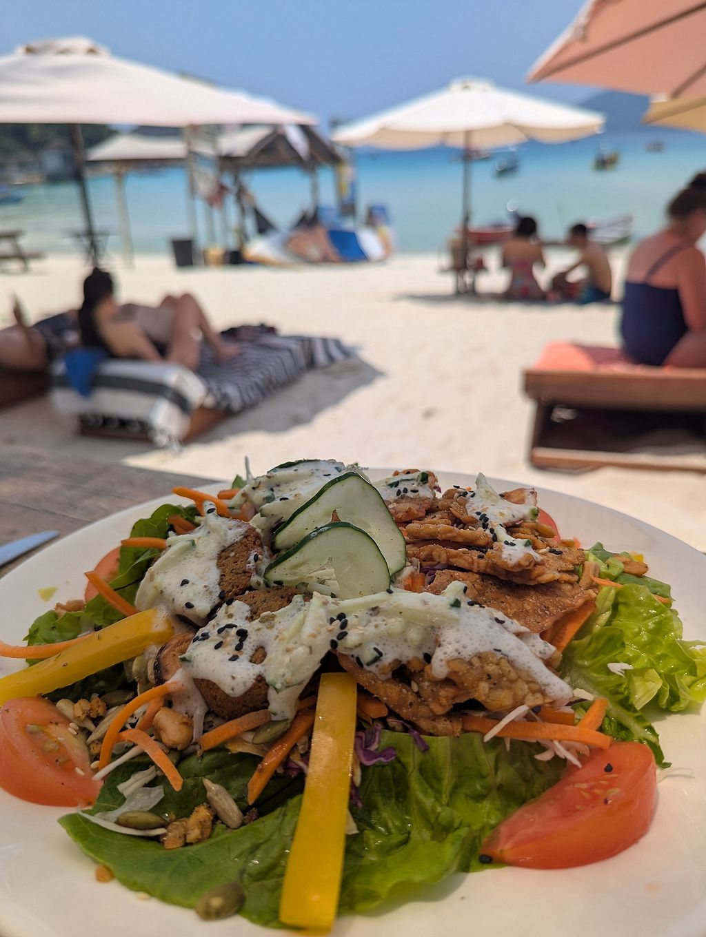 After a few days on Redang island (where there was nothing vegan!) I was so happy to find this place on long beach that had falafel, tempeh and chickpea salad. I asked for no dairy/yoghurt in the salad as I'm vegan and they said they could make a tzatziki dressing with coconut - it was amazing. I'll be coming here for lunch everyday!