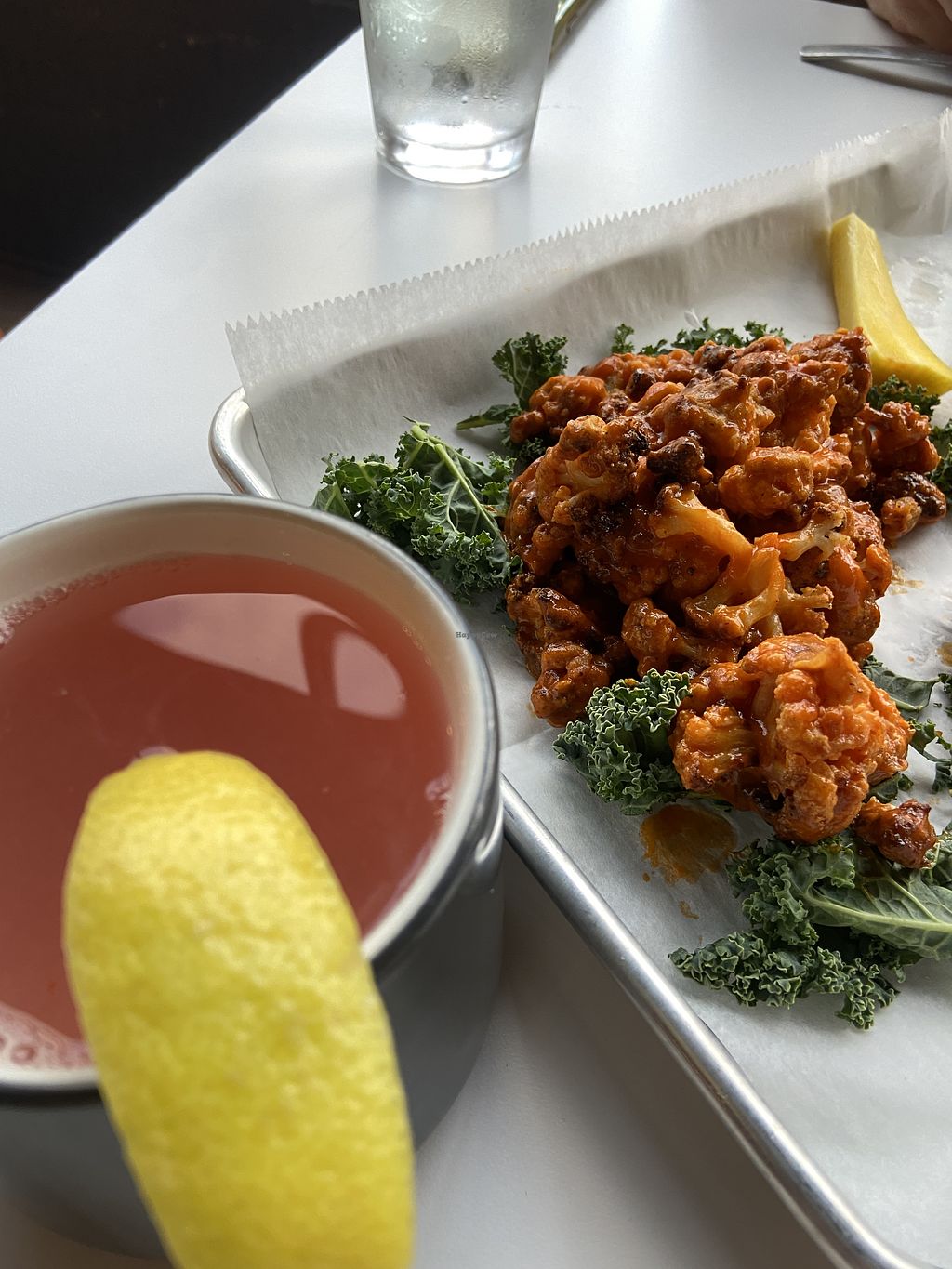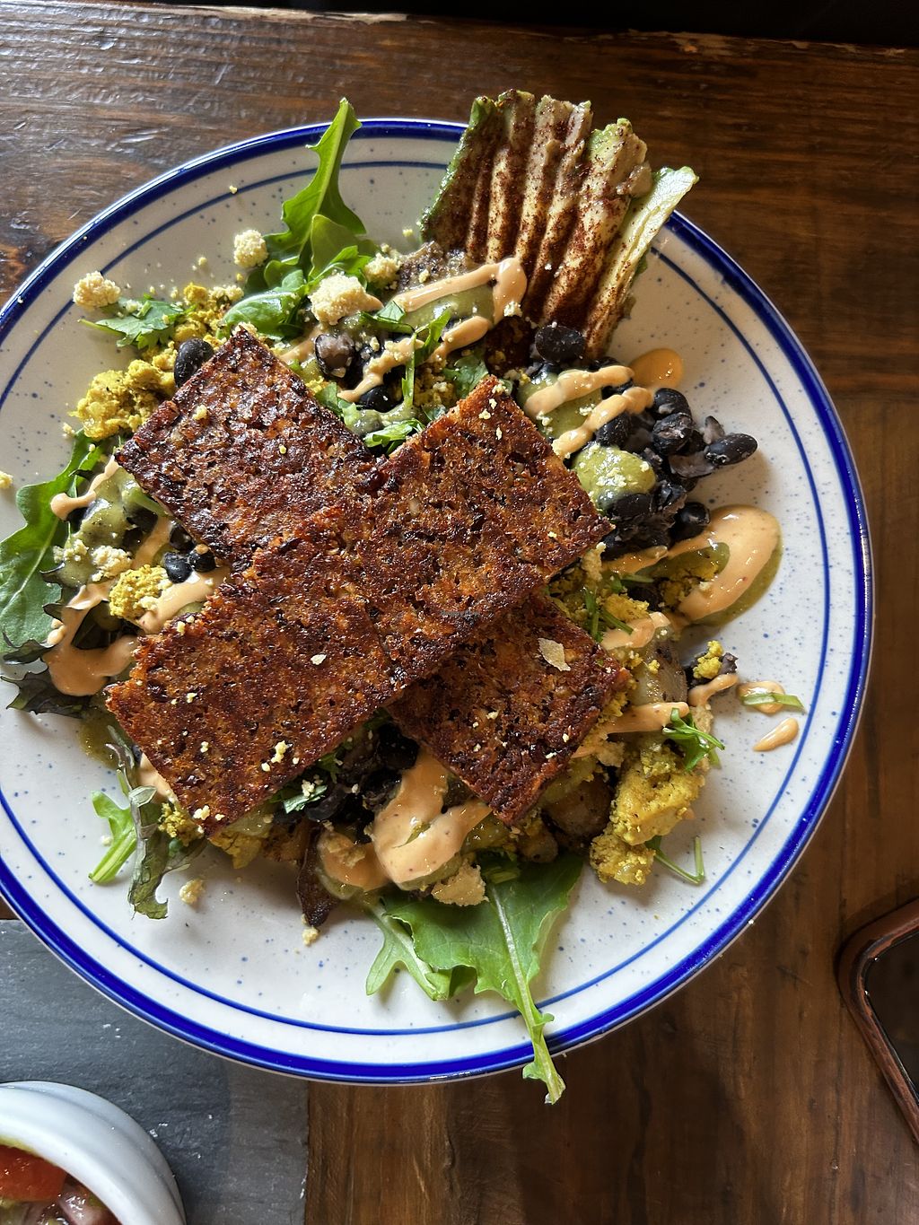From the top, Lilly salad, tacos and Buffalo cauliflower!