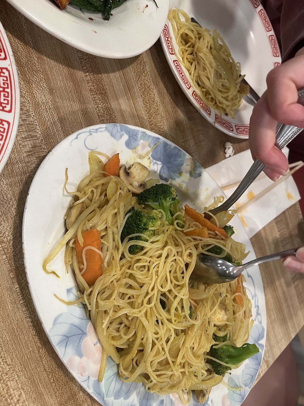 Went with my mom and we both ordered vegetable rice noodles with tofu. After the waitress took our order, the owner came over and told us she was vegetarian and asked if we were. I told her I was vegan, and she suggested that my mom and I share an order of rice noodles and offered to make an additional special dish of eggplant and green beans. Both were absolutely delicious and it was amazing to have such personalized service and accommodations. Will definitely go back!!