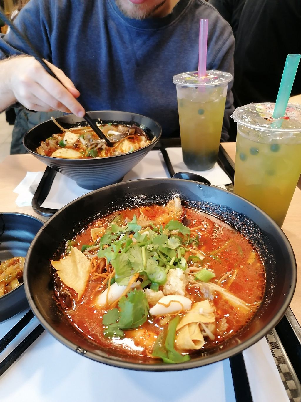 Read moreOffers delicious soups and bubble tea. A lot of different veggies and types of tofu to choose from. Vegan options are not labled though. Also be careful: even if you order a veggie soup base such as kimchi or garlic it's still made with beef. Vegan/vegetarian base costs extra and you need to tell the staff beforehand. Pay by weight. Staff is also a little bit rude most of the time (you get screamed at if you're not fast enough with ordering 🫣) and there are way too many seats for such a small place so it gets extremely crowded and loud.