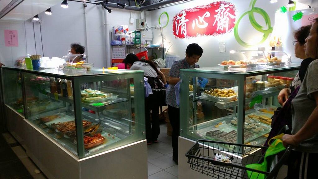 Vegan-friendly Ovo Chinese Fast food Take-out Vegetarian takeaway counter selling desserts, savories, mock meats, and sweet buns. One of several outlets. Reported closed June 2022. More