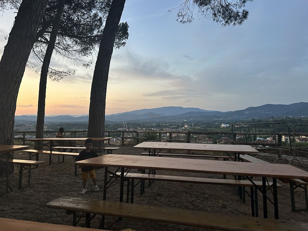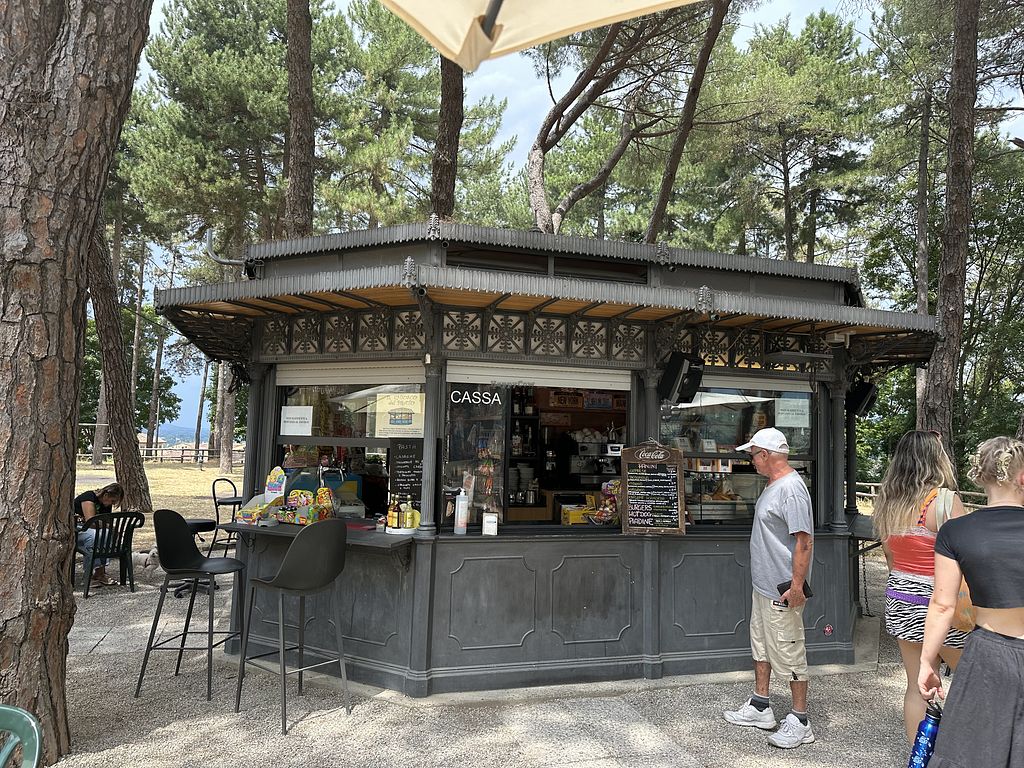 Serves meat, vegan options available. Outdoor gazebo cafe and panini shop located in Piazetta Dietro il Duomo park, overlooking the hills of Tuscany. Offers vegan milks for coffee, clearly labeled vegan panini with vegan cheese, and vegan cocktail options.