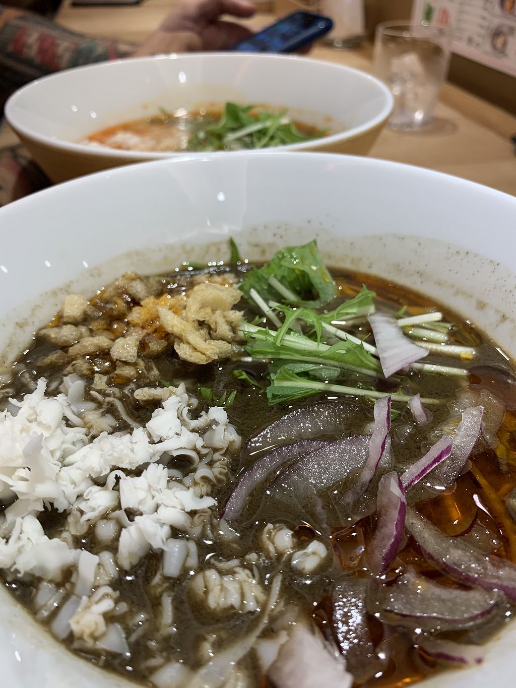 Left is Spicy Dan Dan, and right is Black Sesame Dan Dan
