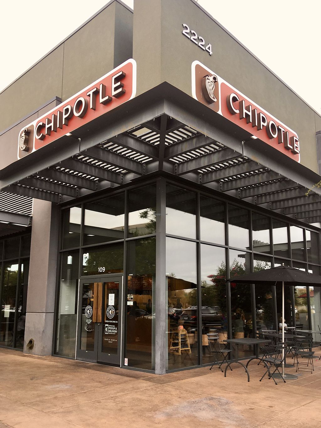 Serves meat, vegan options available. Mexican fast food chain founded 1993 in the US and now operates outlets across North America and several more overseas. Set up is assembly line style where you could customize your order of tacos, burrito, or burrito bowl, and request no cheese or sour cream. Offers a savory sofritas filling that's made from soy protein, and some locations offer Impossible meat. Rice, beans, guacamole are vegan. In early-2019 added a pre-configured vegan bowl which includes the sofritas in addition to other fillings like guacamole. Open Mon-Sun 11:00am-10:00pm.