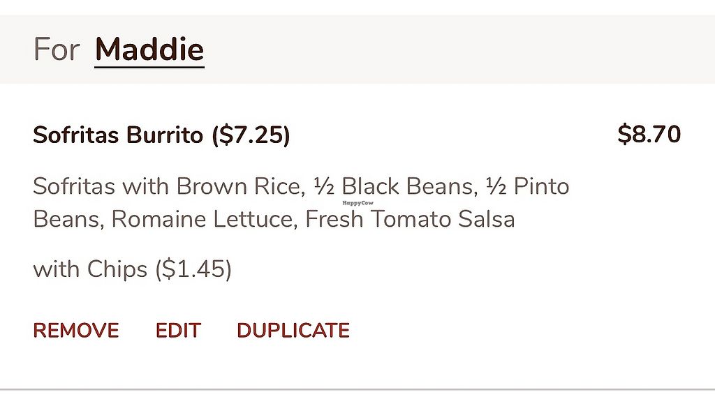 Serves meat, vegan options available. Mexican fast food chain founded 1993 in the US and now operates outlets across North America and several more overseas. Set up is assembly line style where you could customize your order of tacos, burrito, or burrito bowl, and request no cheese or sour cream. Offers a savory sofritas filling that's made from soy protein, and some locations offer Impossible meat. Rice, beans, guacamole are vegan. In early-2019 added a pre-configured vegan bowl which includes the sofritas in addition to other fillings like guacamole. Open Mon-Sat 10:30am-9:00pm, Sun 11:00am-6:00pm.