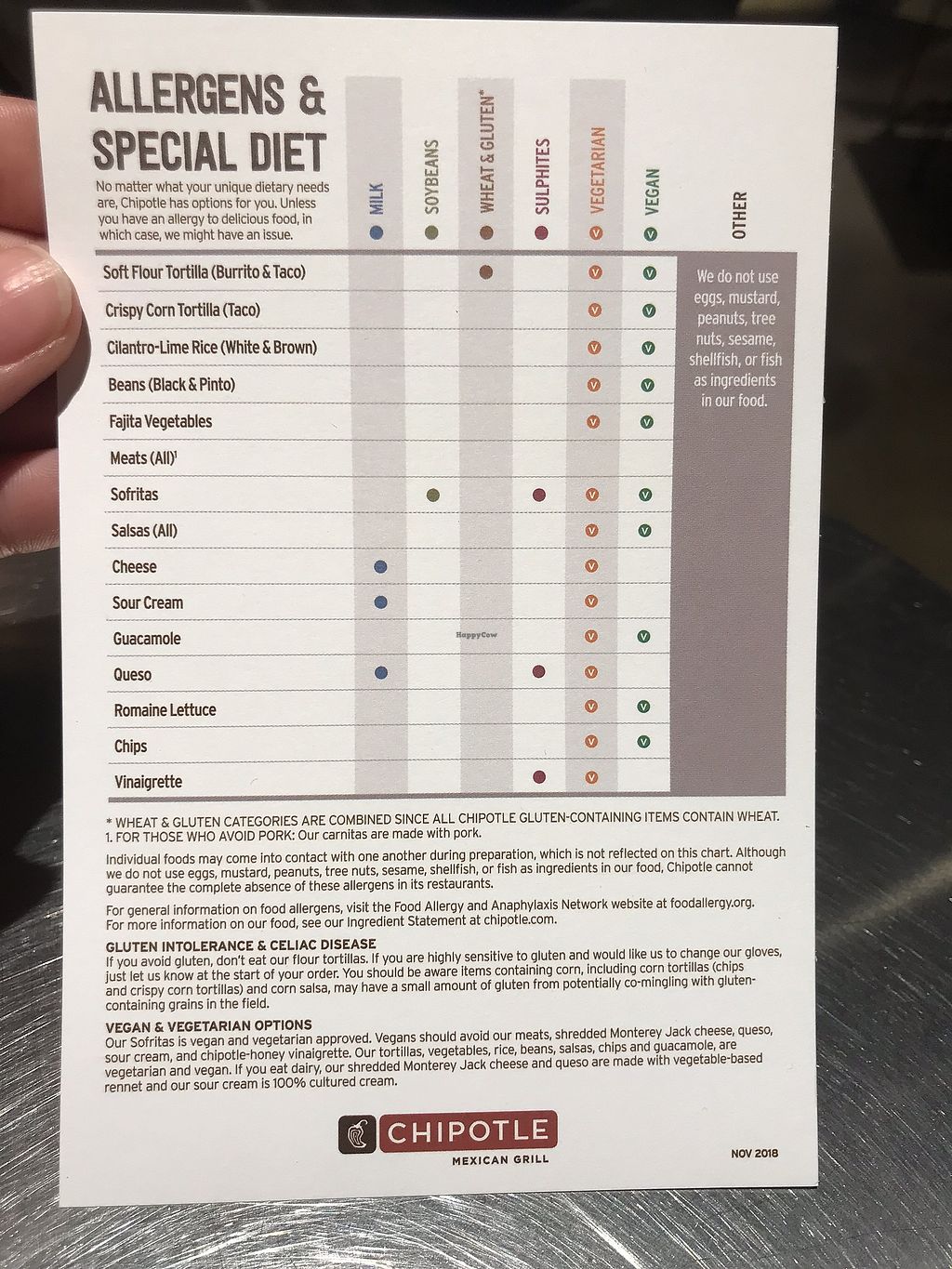 Serves meat, vegan options available. Mexican fast food chain founded 1993 in the US and now operates outlets across North America and several more overseas. Set up is assembly line style where you could customize your order of tacos, burrito, or burrito bowl, and request no cheese or sour cream. Offers a savory sofritas filling that's made from soy protein, and some locations offer Impossible meat. Rice, beans, guacamole are vegan. In early-2019 added a pre-configured vegan bowl which includes the sofritas in addition to other fillings like guacamole. Open Mon-Sun 11:00am-10:00pm.