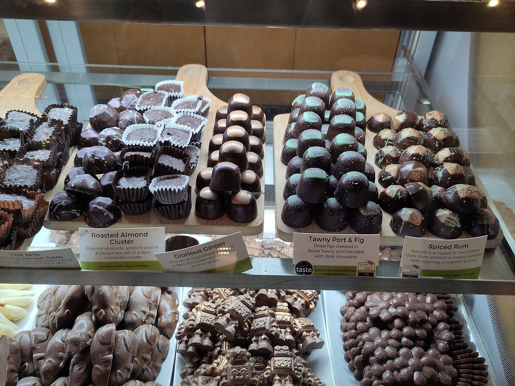 Chocolate shop with cafe area selling cakes, hot drinks, and an ice cream counter with dairy-free flavour options. Plant milks are available for hot chocolate and coffee. Sells vegan chocolates. Open Mon-Fri 09:30-17:00, Sat 09:00-17:30, Sun 10:00-17:00.