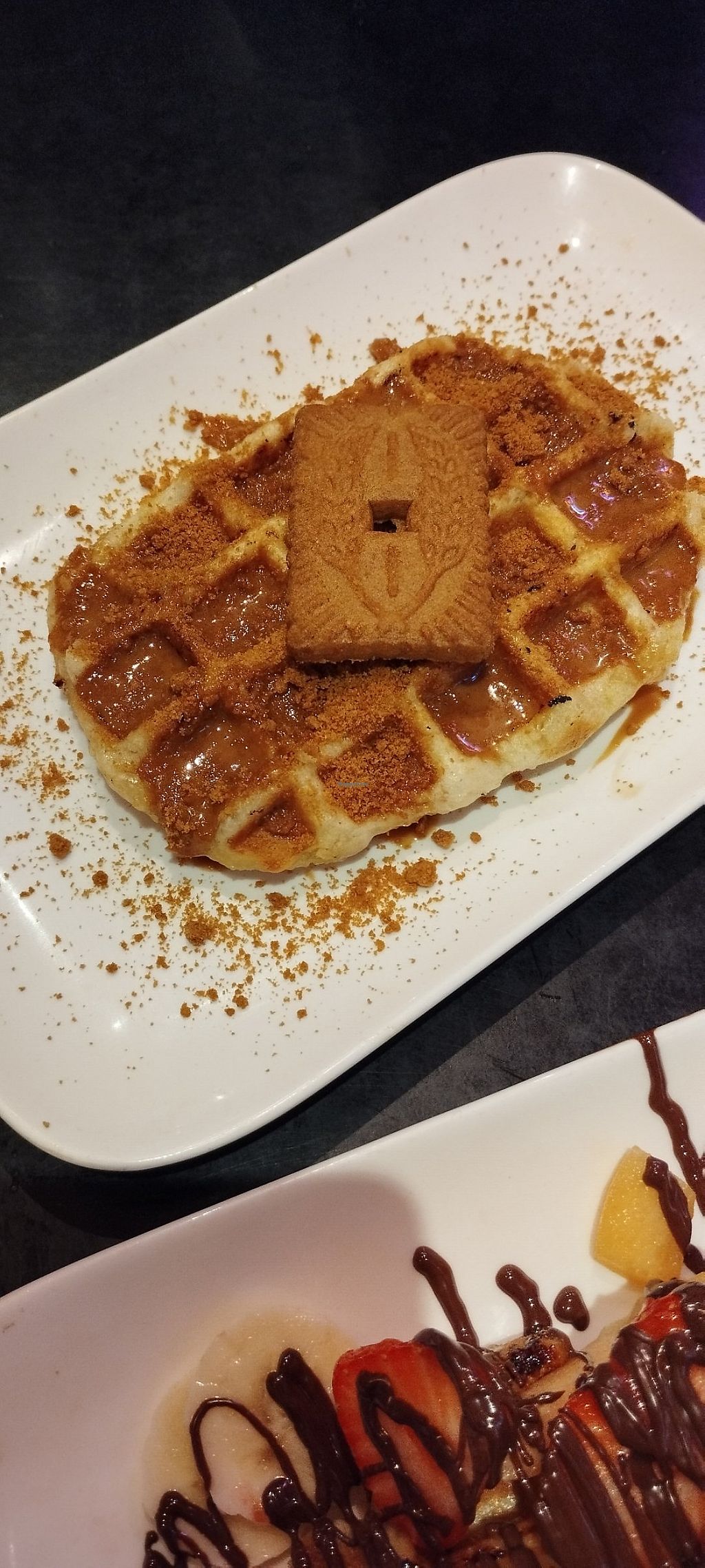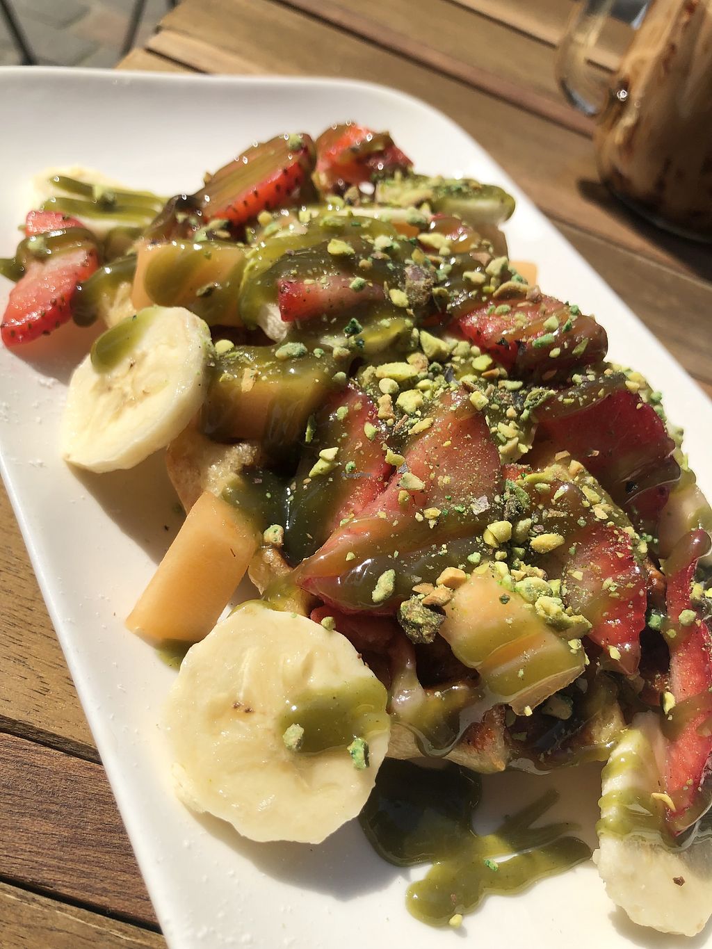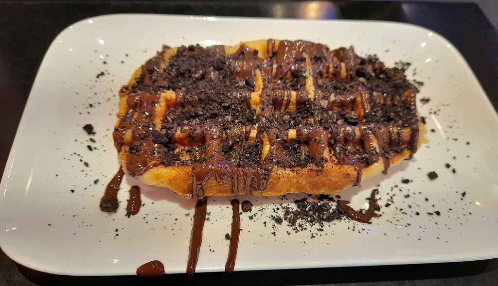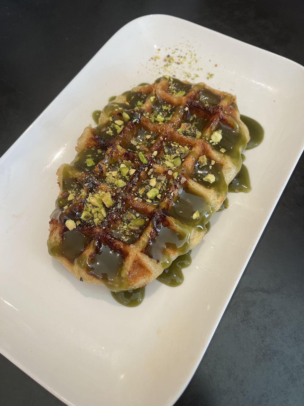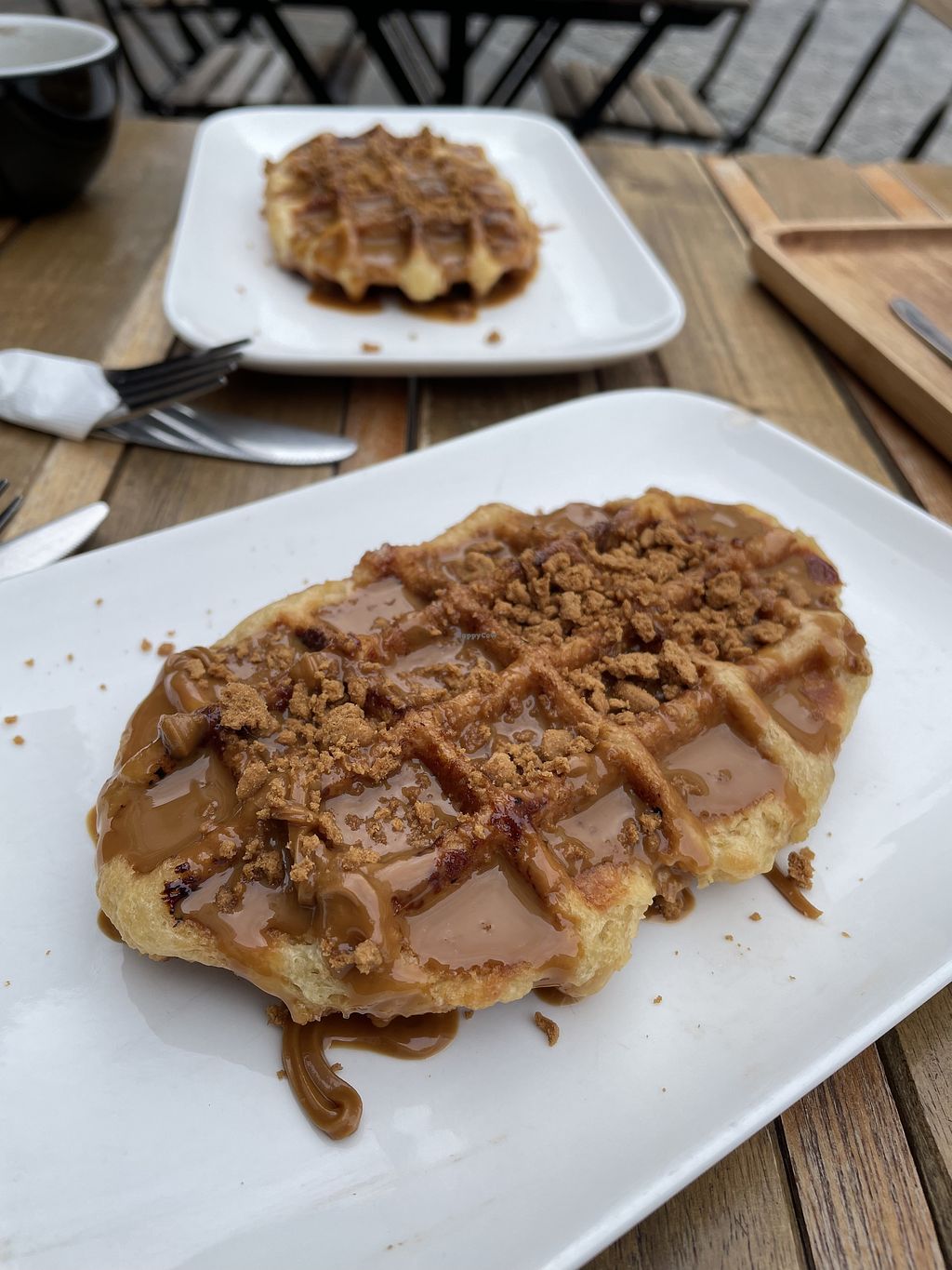 Vegan waffle with oat milk latte. Tell Sam sent you!