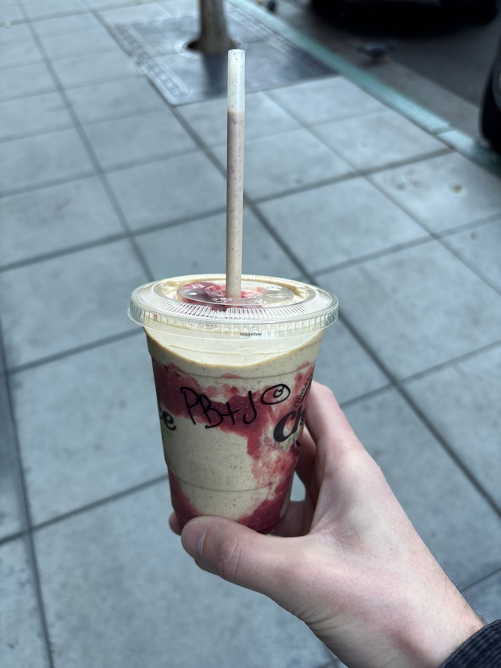 I was in a rush for lunch, so got a PB&J smoothie. It took like 10 minutes to make with 1 order in front of me. Smoothie was really tasty and actually filling. I liked how the peanut butter and jelly weren't fully blended together, but more like a swirl. Nice to have 100% vegan options.