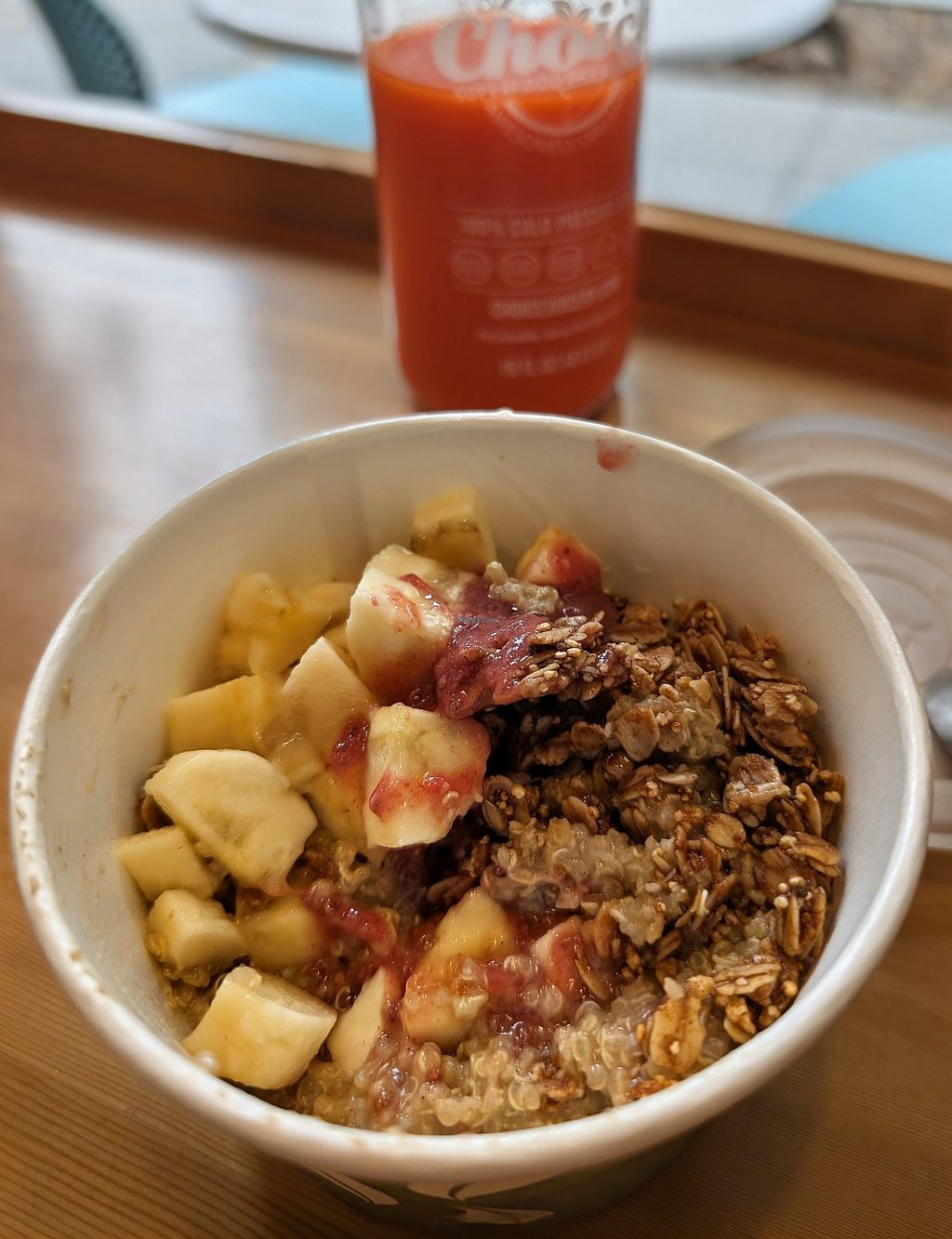 Buddha bowl (has quinoa, very tasty), and dawn patrol juice, super del…