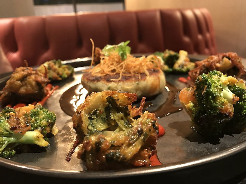 Serves meat, vegan options available. Indian restaurant with marked vegan dishes on the menu. Examples are pakora fritters, vegan platter, sambar, potato chakra, channa masala, seasonal vegetables and vegan biryani. Also has small bowls to choose from, a gin library and a private wine collection, as well as private dining room. Plant milks for coffee and tea. Confirmed closed, Jul 2019.