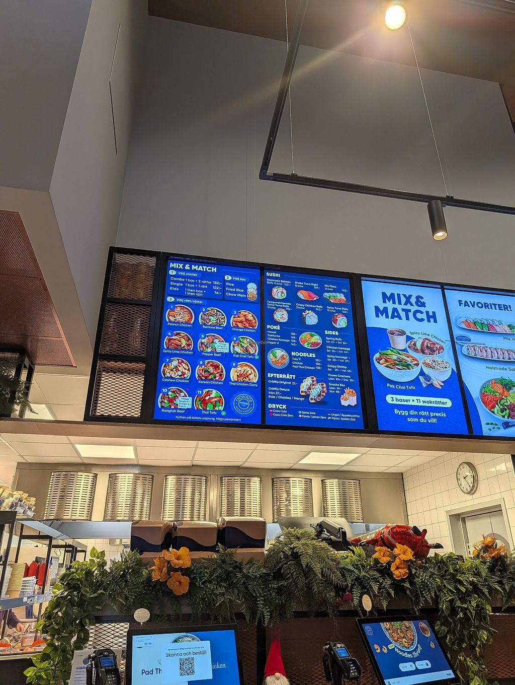 Serves meat, vegan options available. Fast food Asian restaurant with a few vegan dishes such as a poké bowl, sushi, noodles and two tofu courses. Cashless. Please note that many businesses in Sweden are cashless. Open Mon-Fri 10:30-21:00, Sat-Sun 11:00-21:00.