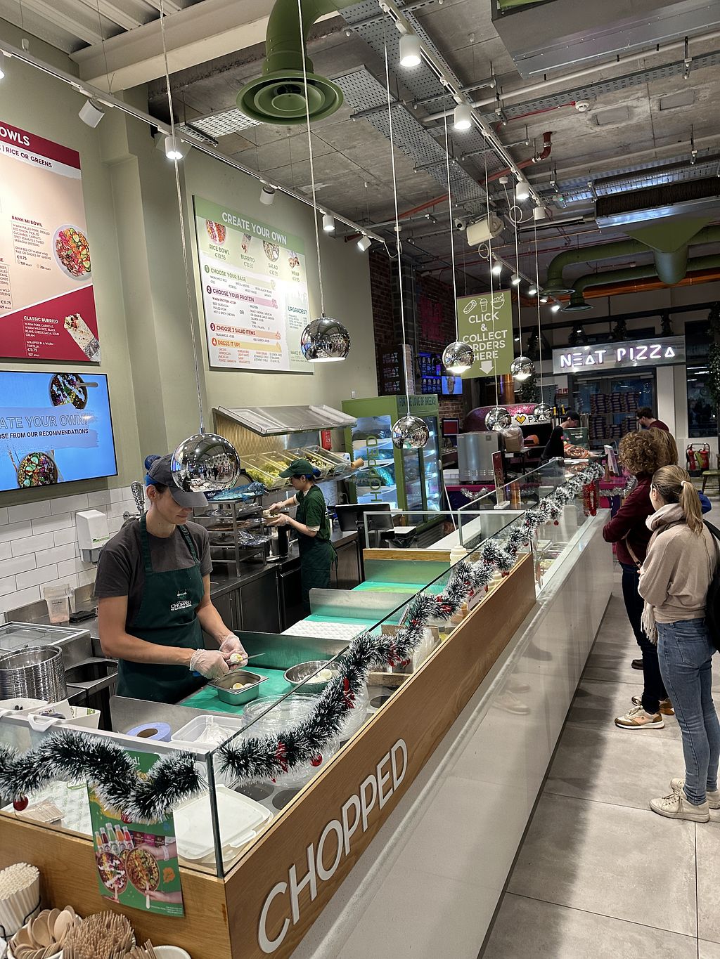 Serves meat, vegan options available. Quick-service salad restaurant franchise with outlets across Ireland. Offers a large pre-designed menu where each selection may be ordered as salad, wrap, sandwich, or bowl. Vegan items are labeled and include the vegan body builder, the Lebanese falafel, and the garden tofu. Has smoothies and bottled juices. Open Mon-Fri 08:30-17:30, Sat-Sun 09:30-17:30.
