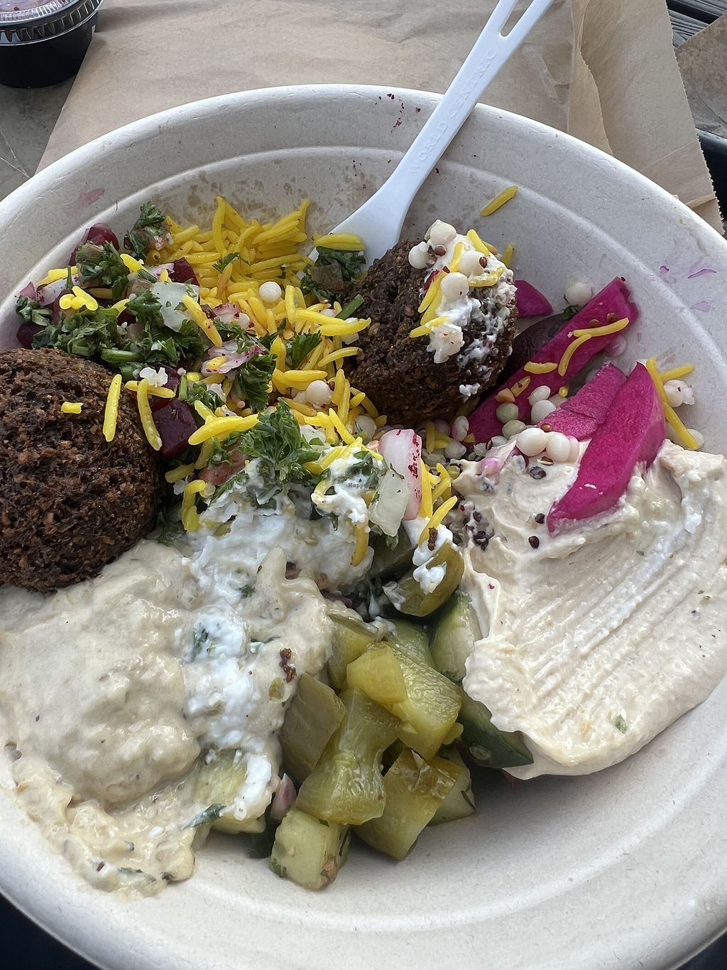 Delicious falafel and vegan topping options! Best Mediterranean food in the area!