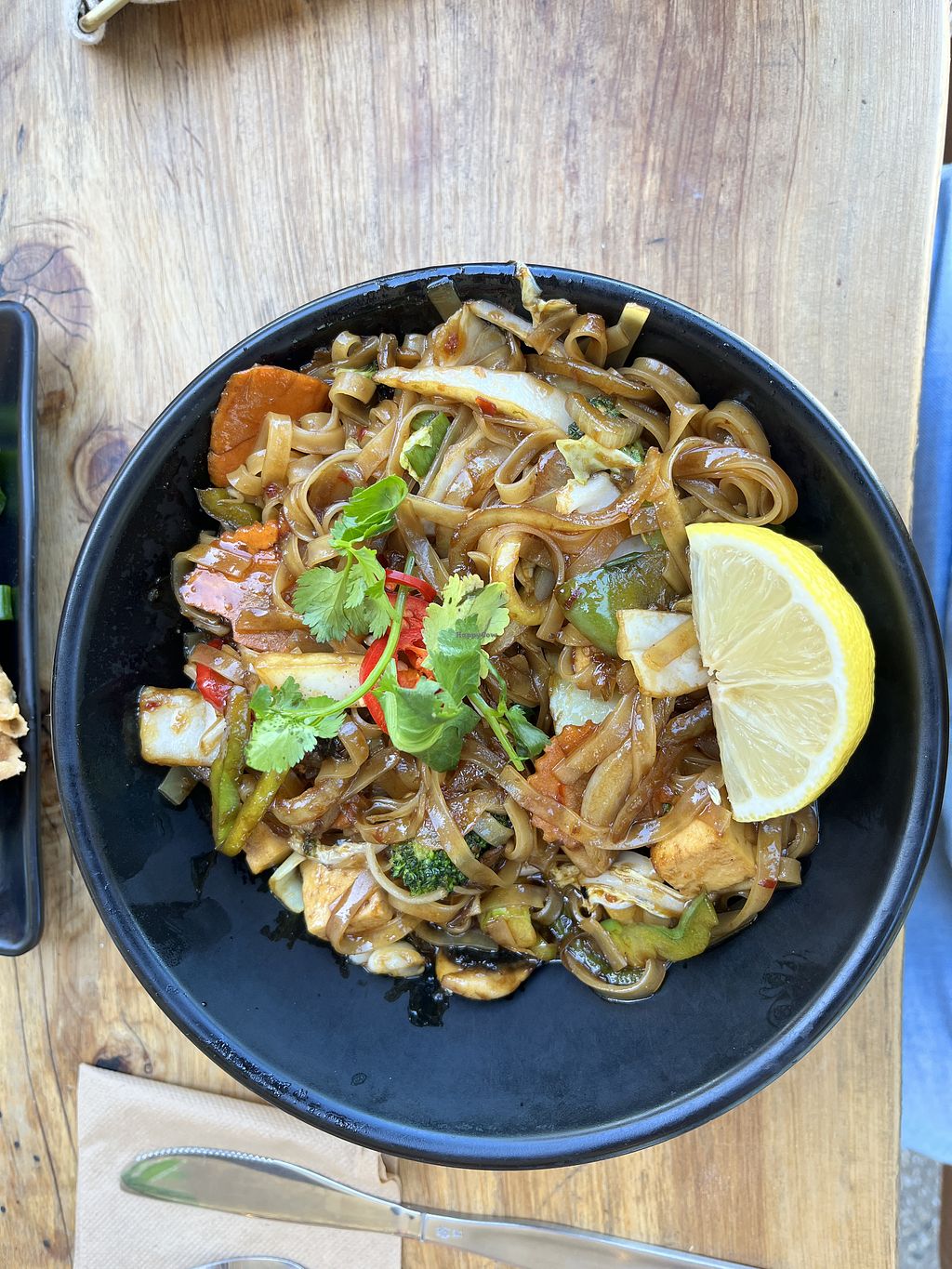 You have to double check which veggie dishes are vegan. I had the veggie spring rolls and the mean greens with rice noodles. The spring rolls were very tasty. The noodles were nice too, but greasier than I’d hoped.