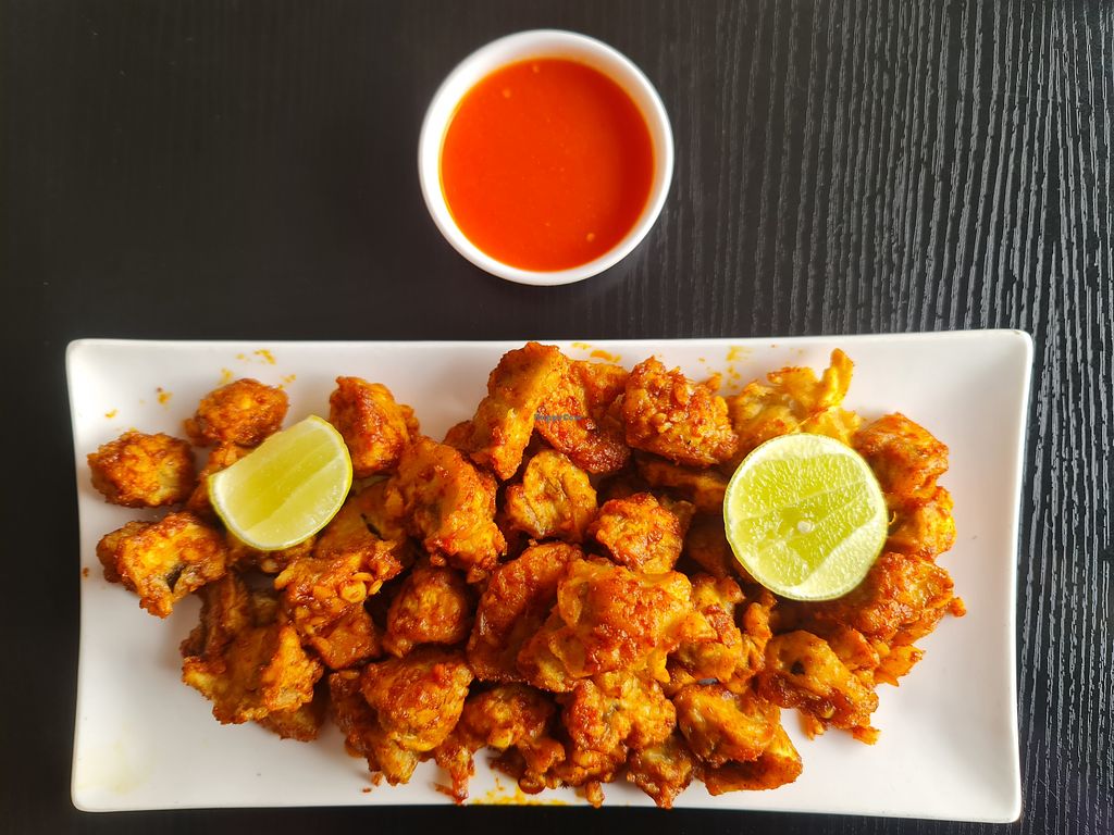 Kung Pao potato wedges (amazing) and tofu tikka (vegan tikka paste)