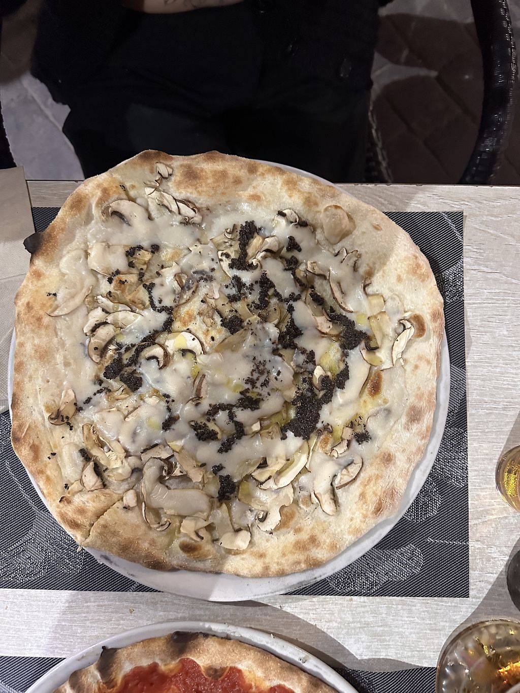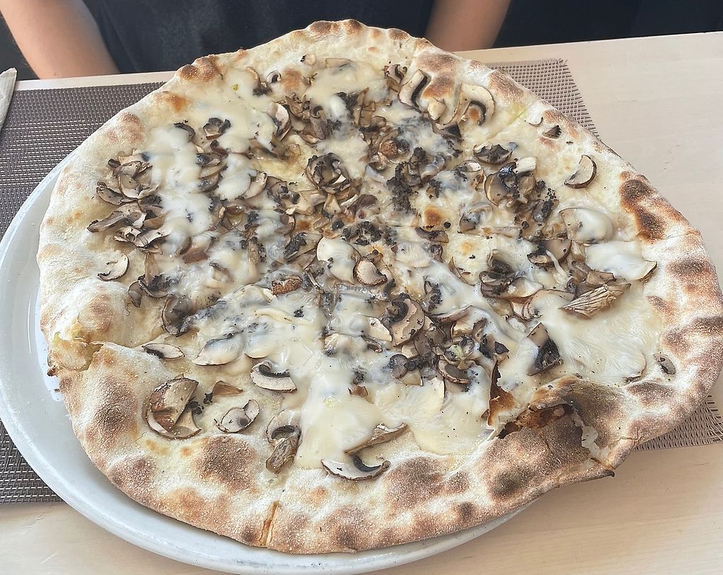 Vegan Pizza with vegan mozzarella, mushrooms and truffle