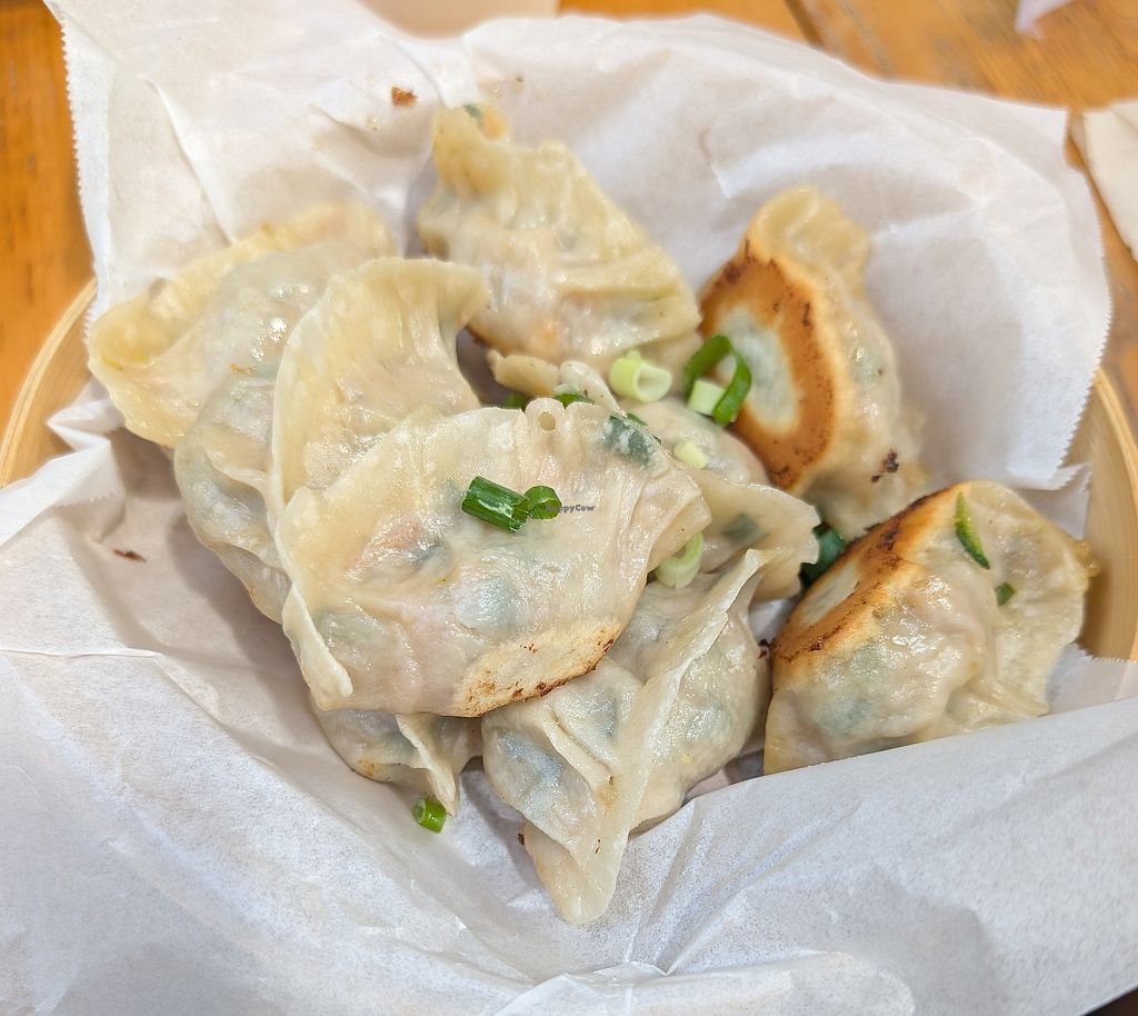 They have labelled vegan dumplings which are nice, but the eggplant ones are also vegan and the shallot pancake. Not bad for the area and thankful for vegan options.