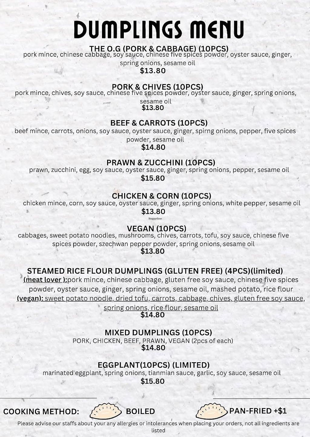 The 2 vegan dumpling options are both wonderfully tasty! Menu is limited to these though. They also offer vegetable spring rolls but we didn't ask if they were vegan.