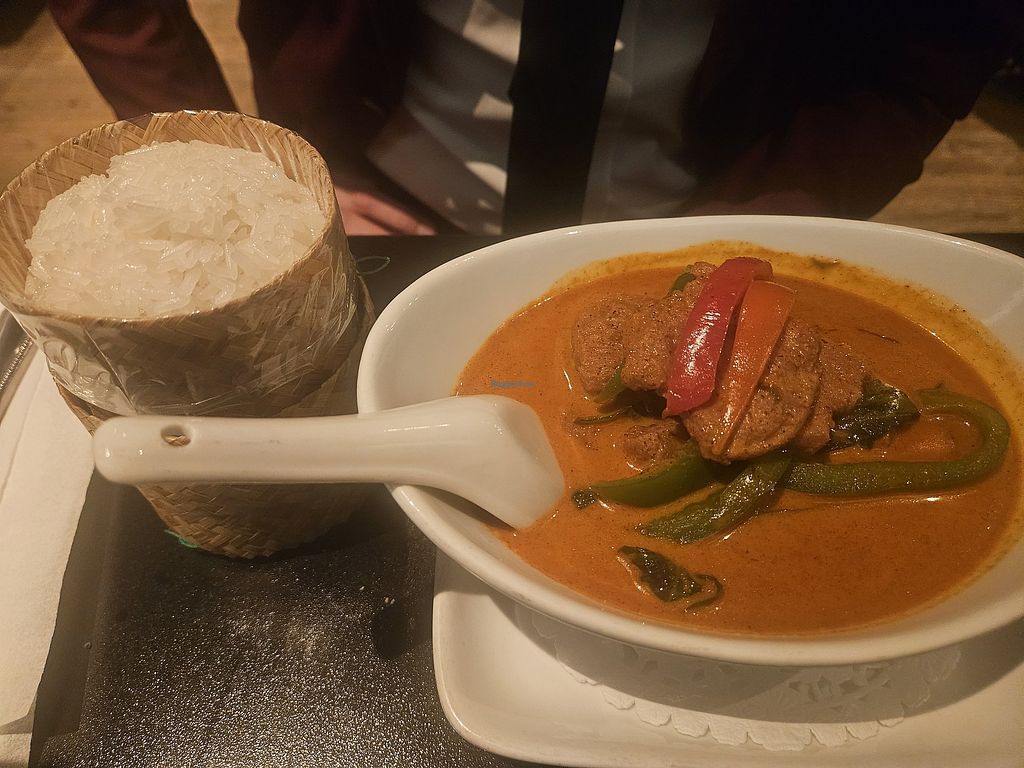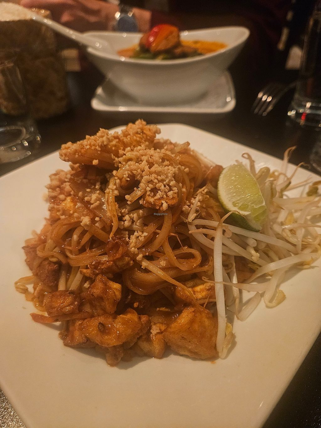 The vegans and non-vegans I went with were very impressed! We started with appetizers to share, my favorite being the chicken skewers. I then had the chicken red curry with rice, which was also good but I’ve had better. The pad Thai with tofu, “chicken” and “shrimp” looked really delicious, and was a hit by the non-vegans who ordered it. They were particularly amazed by the “shrimp”. I’d try that next time. Overall great experience and service too.