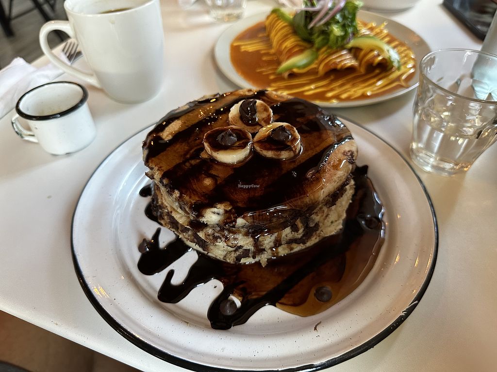 Sweet potato pancakes $185 with banana, almond butter and maple syrup