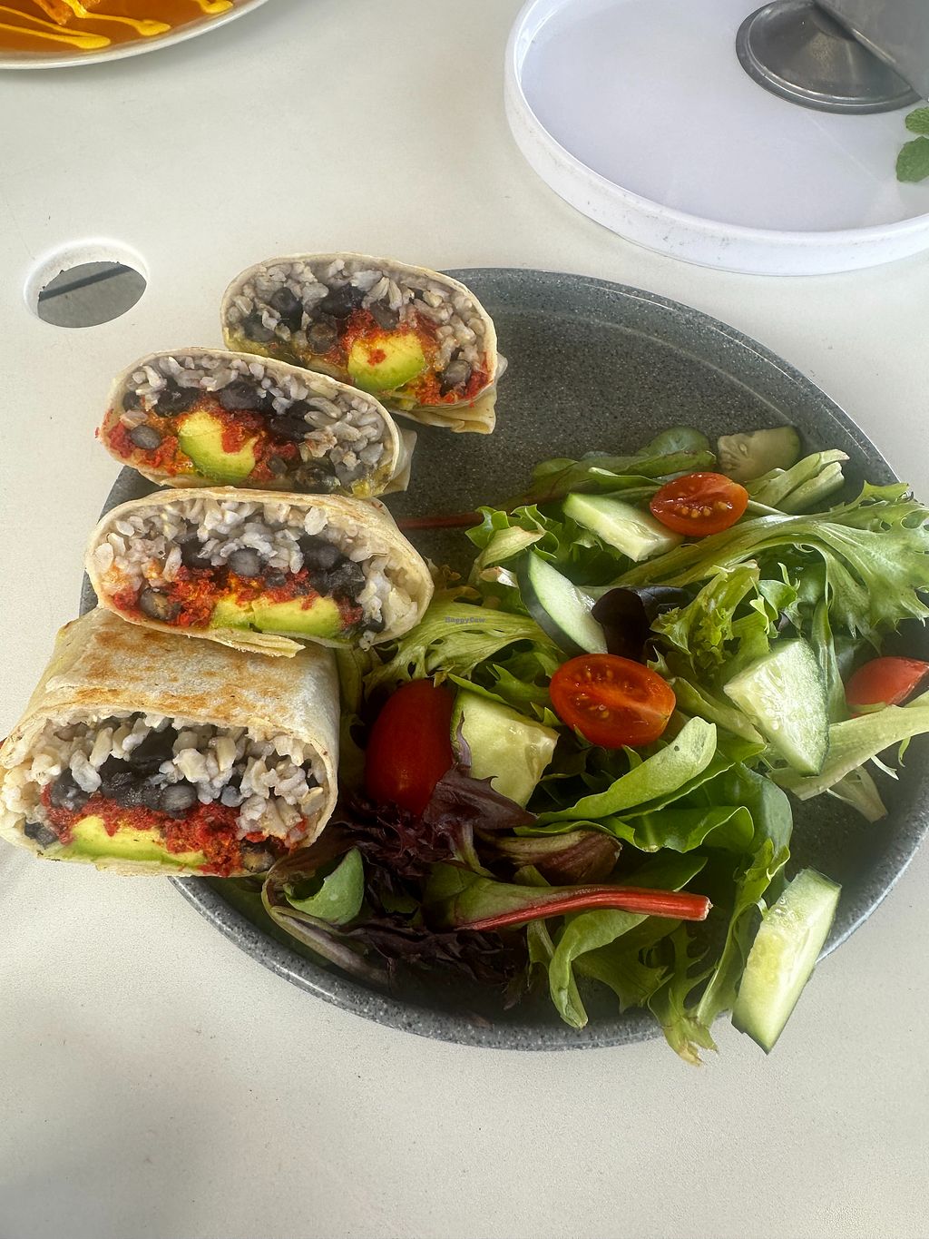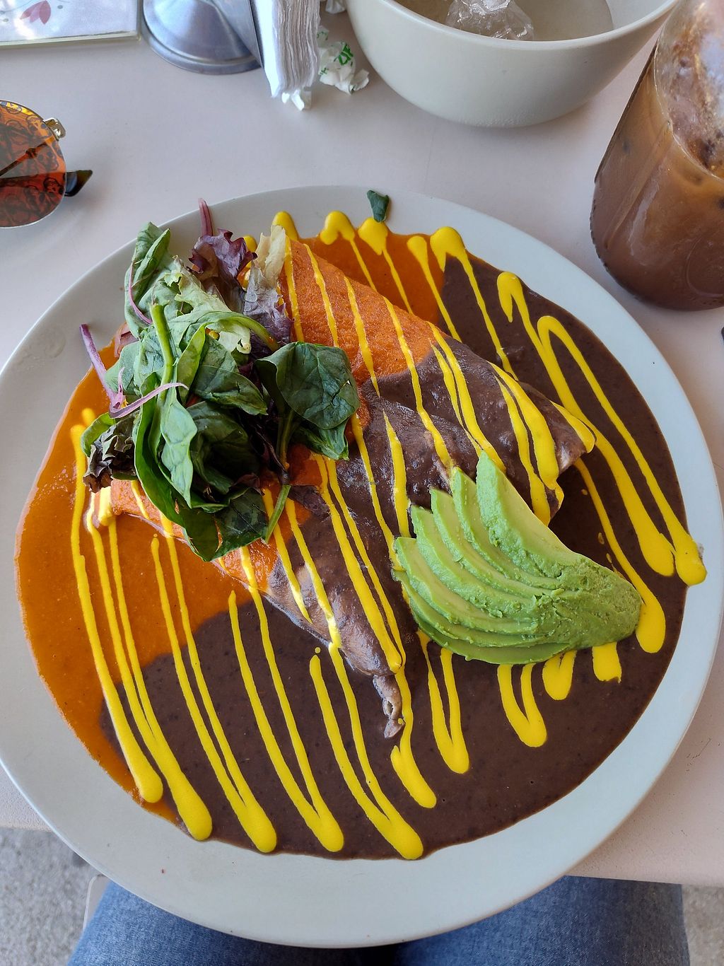 Enfrijoladas $180 filled with chorizo and potatoes, cashew cheese, sa…
