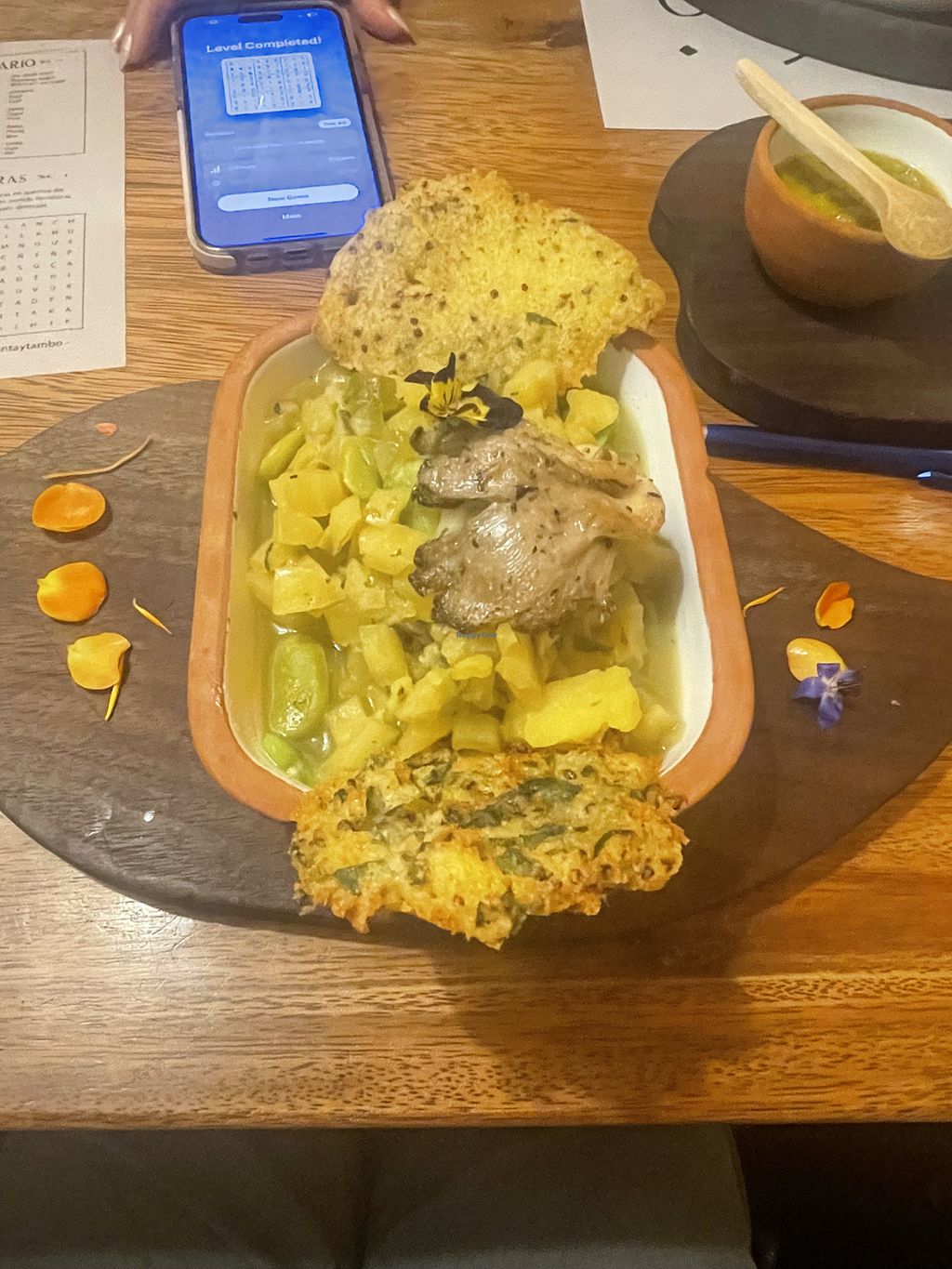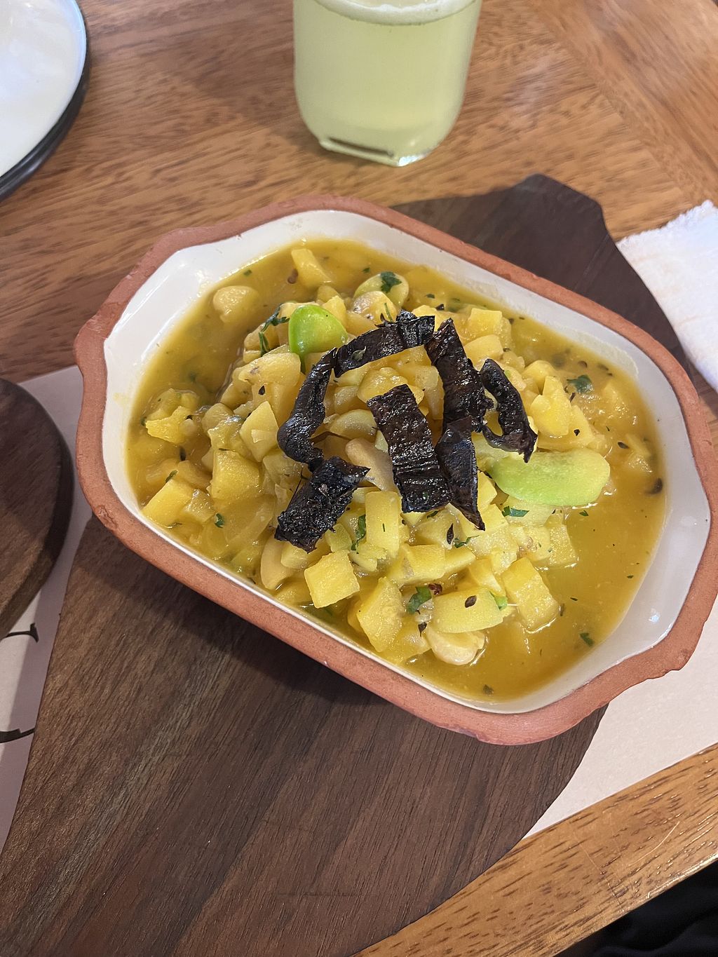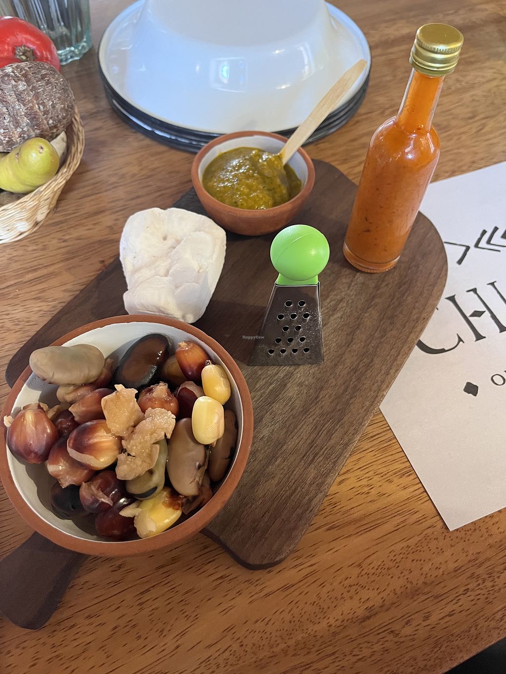 We loved this place. We came for lunch one day and really hoped to get back for dinner one evening but didn’t make it. Vegan is marked on the menu but it’s an Omni spot. We loved that they focus on Indigenous ingredients and dishes, showcasing corn, potatoes, sal de maras, and others. The server/manager? was also intentional about making sure our food was vegan. We ordered the squash / pumpkin stew and when it came out he came over and told us that the grains were cooked in butter, took it away before I could have any, and came back with a new dish that was butter free. So if you order that dish make sure you double check bc our original server missed that when he placed the order. We were also told that the tortillas that come with the potato soup have egg in them, just a heads up, so we didn’t get those either. So even tho the menu is marked for vegan, definitely make sure you specify. All in all a really lovely restaurant on the plaza.