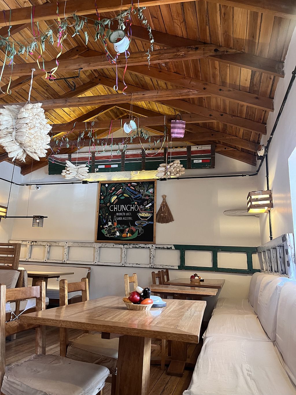 I loved the vibe of this place and the meal I had was terrific. I had the Locro de Zapallo (kind-of a pumpkin stew with fava beans and corn). Extra credit to this place for their low-waste sustainability efforts — no plastic, cloth napkins, cloth towels in restroom. Be sure to sample some of the local liquors downstairs!