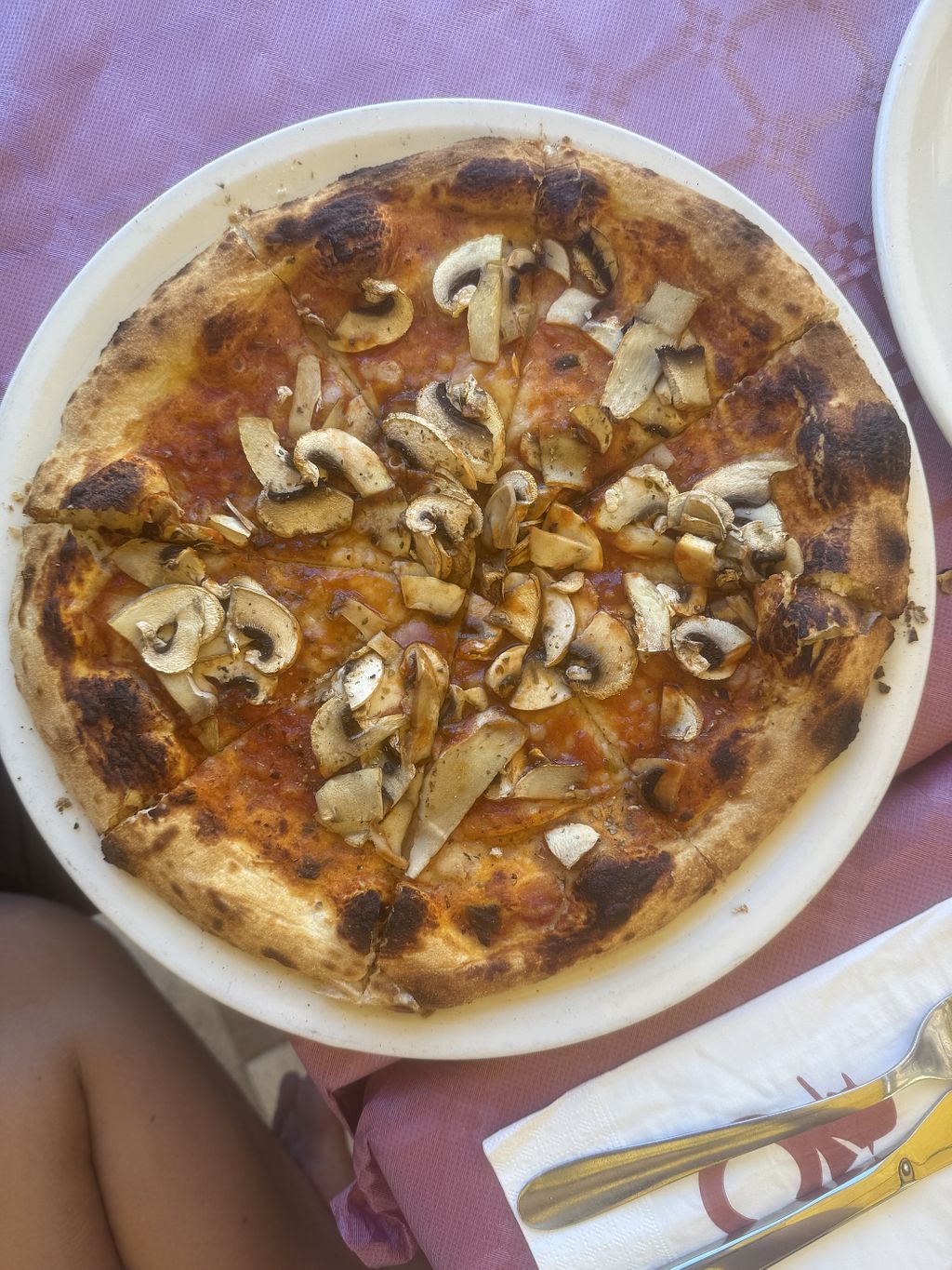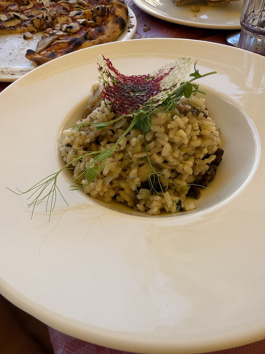 We stumbled across this place and shared the vegan pizza and mushroom risotto (made vegan with no cream and no cheese). The pizza and focaccia was really yummy. The risotto was pretty bland and average. The waiters were really friendly and beautiful location.