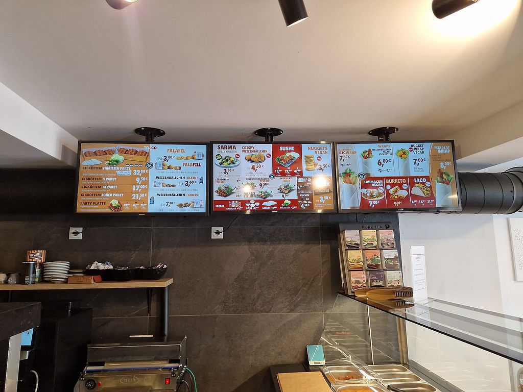 Vegetarian snack bar offering a few vegan dishes such as ciğköfte, falafel, wheat balls, nuggets, börek, sarma and desserts. Open Mon-Thu 11:00-20:00, Fri-Sat 11:00-22:00, Sun 11:00-20:00.