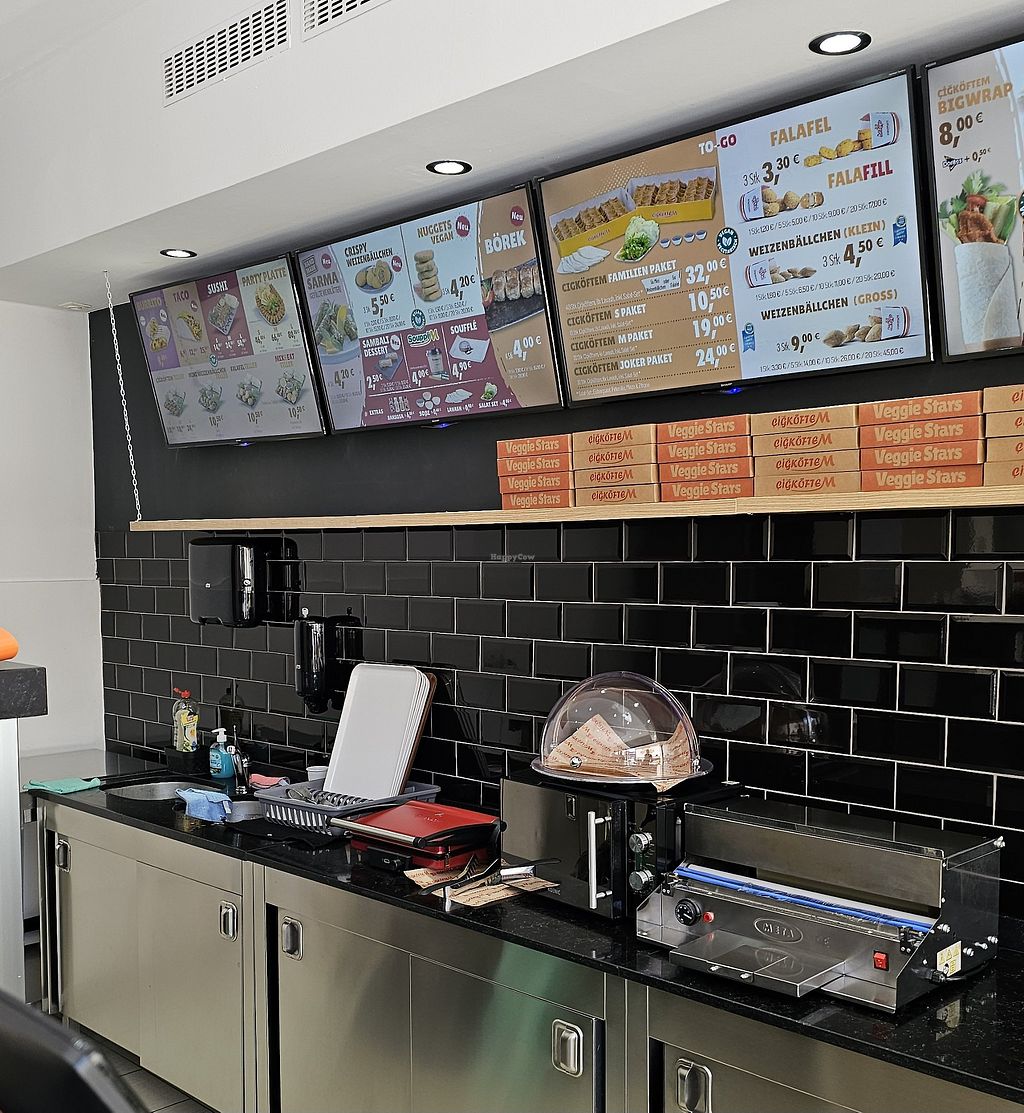 International franchise of vegetarian eateries specializing in Turkish vegan kofte made of bulgur, tomato, herbs, and spices. Get in a wrap, as a burger, or with durum (wheat). Offers also falafel and pita. Food is all vegan, but drinks and dessert may contain dairy and/or honey. Relocated from Salurner Str 1. Open Mon-Thu 11:00-21:00, Fri-Sat 11:00-22:30. Closed Sun.