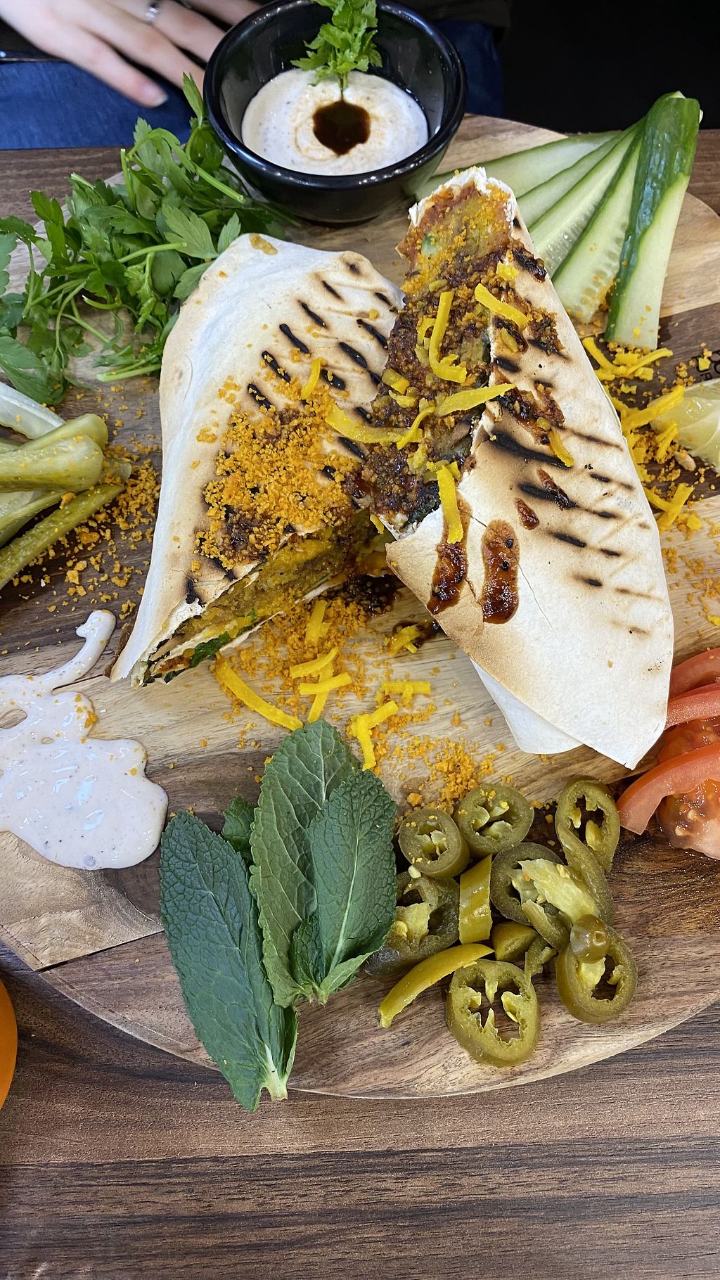 I had the cigkofte dish which was a puzzle because of the very large wrap but when you tear in pieces and then fill it up with the veggies, it's delicious. Best falafel balls I ever had and a nice introduction to cigkofte!