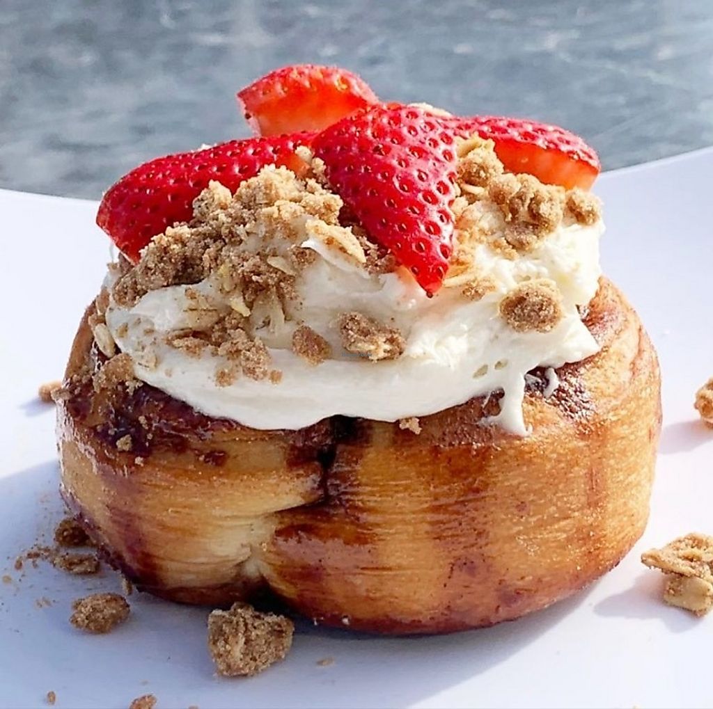 Jelly Donut Roll! Vanilla Frosting with House-made Pie Crumble & Raspb…