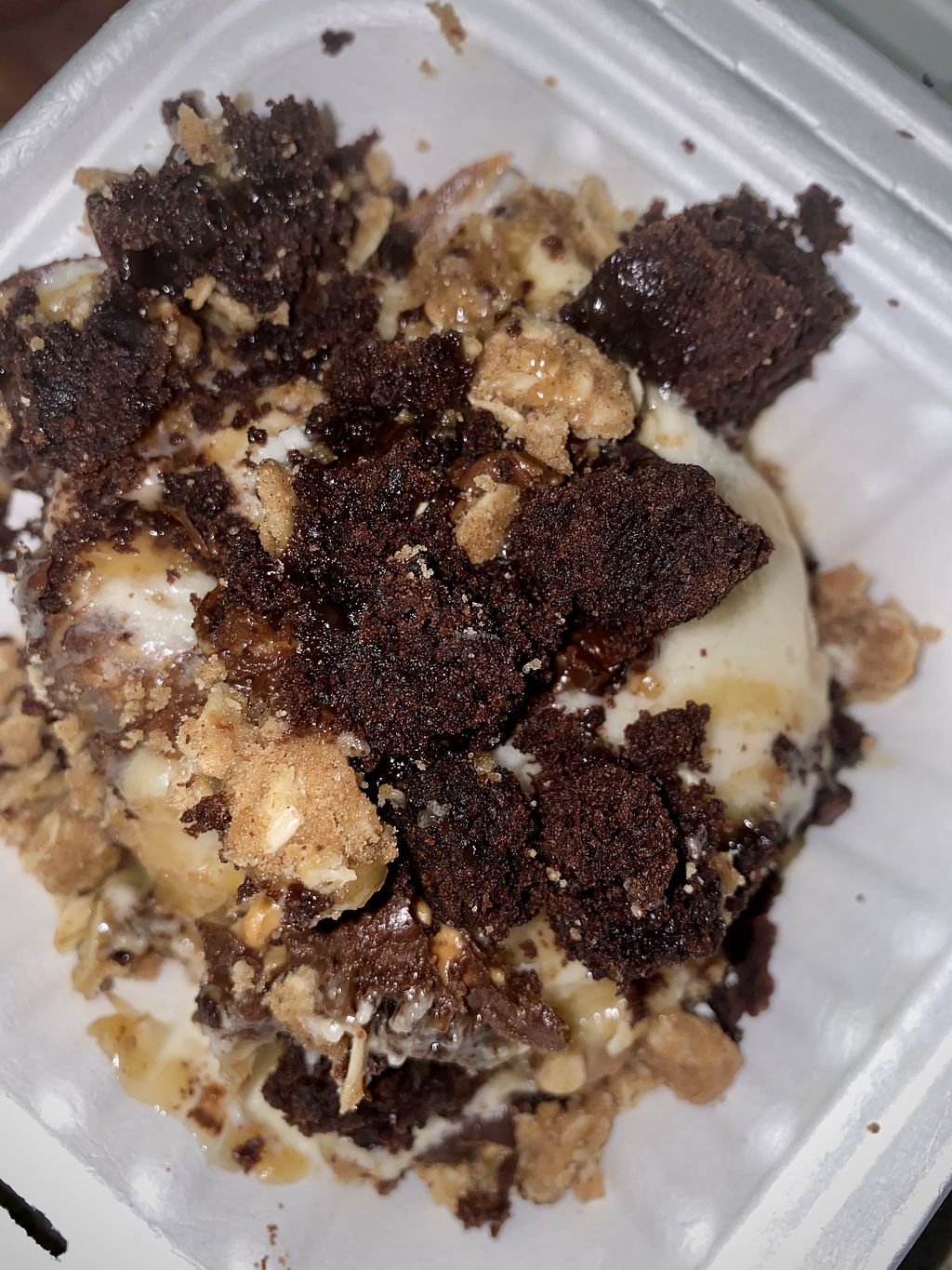 Pie crumble, Brownie, PB cups, caramel sauce toppings