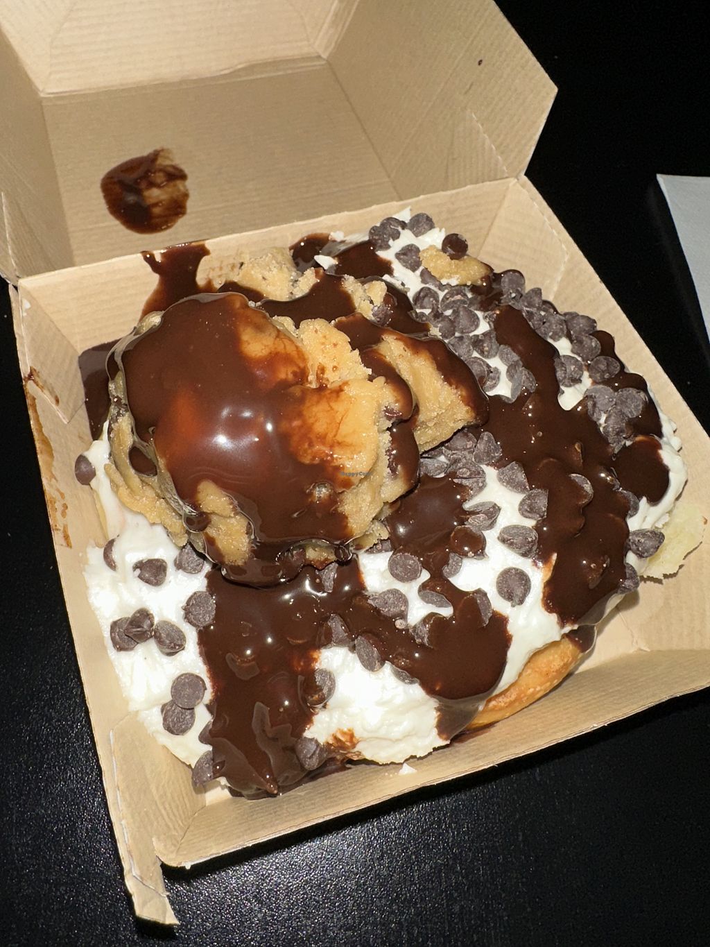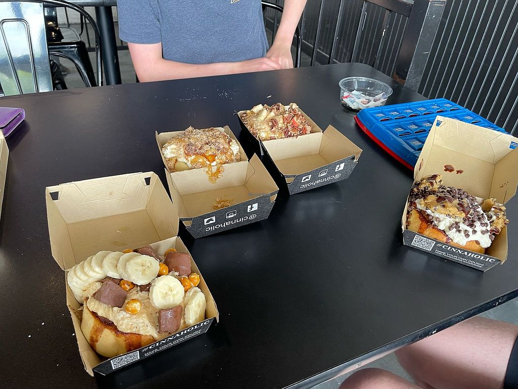 Bananas Foster cinnamon roll with cream cheese frosting (my request).