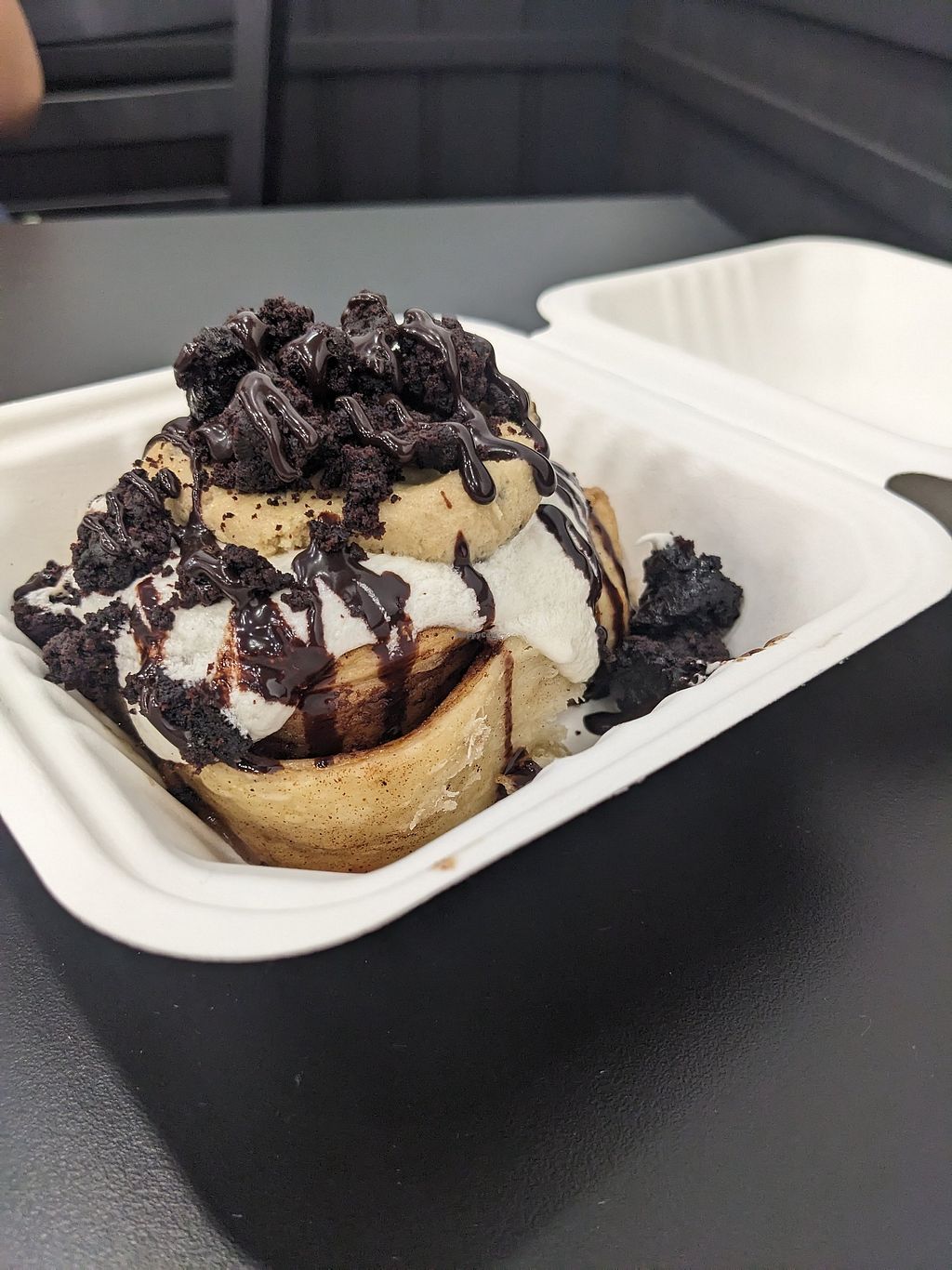 I got the bake sale cinnamon bun and it had everything I have missed the most since becoming vegan (creamy icing, cookie dough, normal tasting baked goods) so delicious, I will be returning