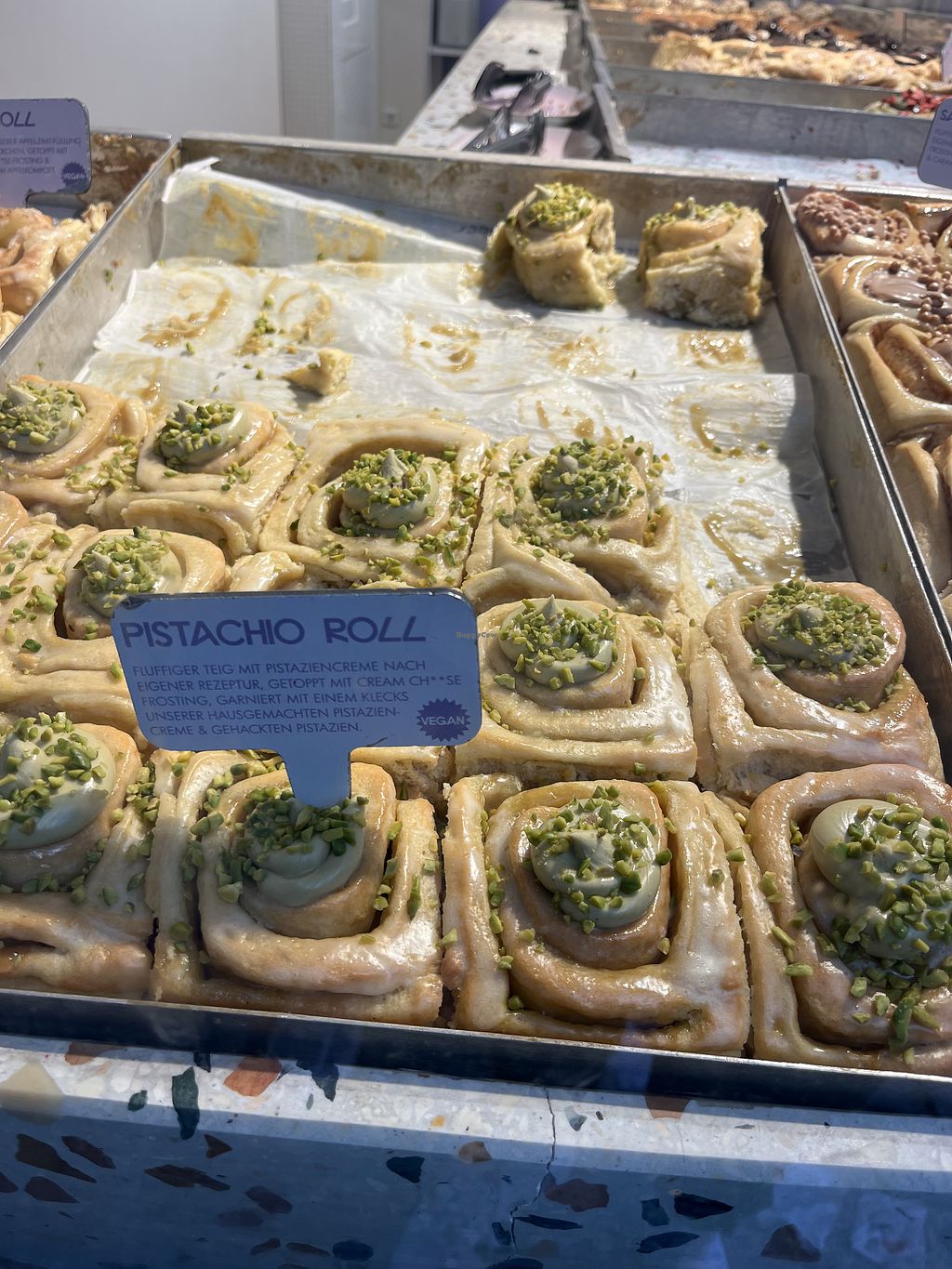 Most of the flavours are vegan. I tried cookie dough and bienenstich (vanilla with almonds) and both were tasty. The cinnamon rolls are a bit pricy, though.