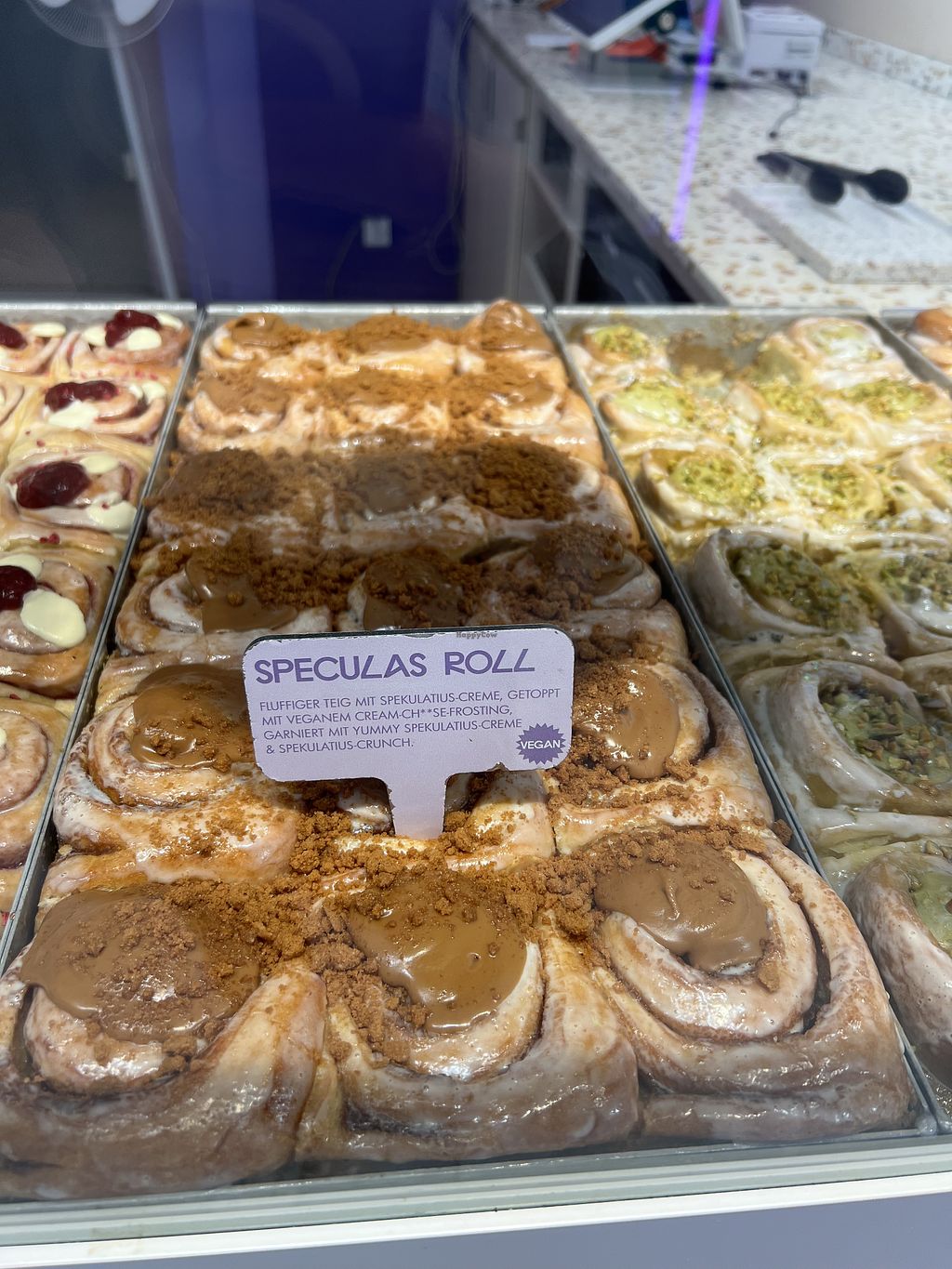 Die meisten Zimtschnecken sind vegan. Wir haben 4 verschiedene probiert und alle waren wirklich lecker und abwechslungsreich. Mir wurde gesagt, dass bald noch mehr vegane Varianten kommen sollen😄