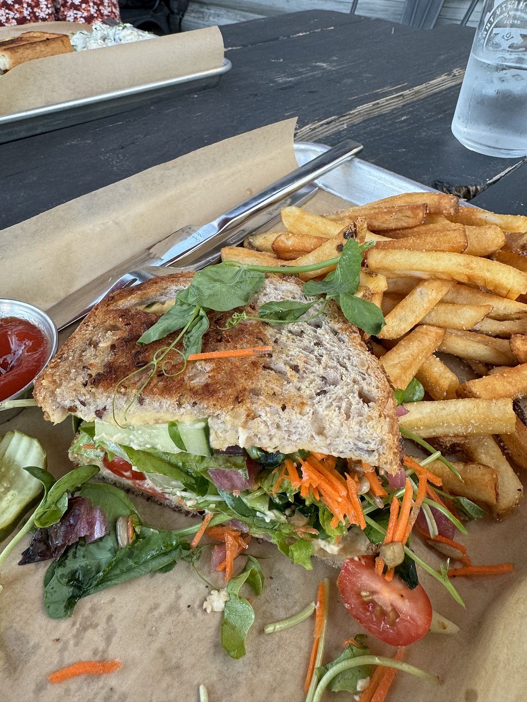 They actually have a couple of items marked vegan, the Vegan Veggie sand and the Housemade veggie burger (vegan version). They were both great, well beyond what we expected for a small town. The staff was really nice when we called ahead to check. Oh yeah, we were told the fries are not cooked in the same oil as the “meats” which is important to me.
