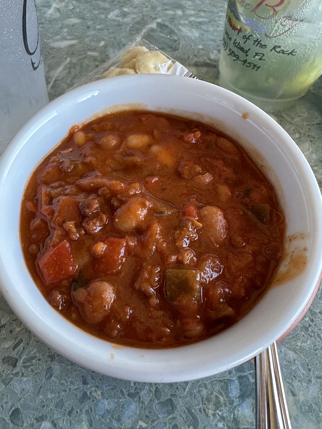 My husband and I went a little crazy and ordered too much. We were to excited about all the vegan options! First, we were super happy with our starter, upside down nachos with vegan chili and avocado, hold cheese obviously. Second, if available when you go, the veggie soup is a must try. So delicious and loaded with veggies. Finally, the charred veggie slant was absolutely amazing. Grilled/charred veggies served with a polenta patty. The restaurant is on the water and offers in and outdoor seating. We sat at the bar and had great service! Enjoy!