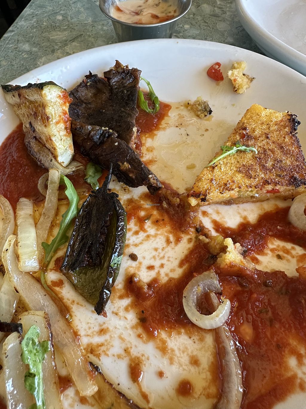 CJ’s on the Bay is a classic American seafood place, but has some very nice vegan options that were a lot better than I was expecting for a place like this. The charred veggie slant was exceptionally good. Spaghetti putanesca also not bad. Vegan appetizers include a chili with Beyond beef, hummus and veggies and salad.